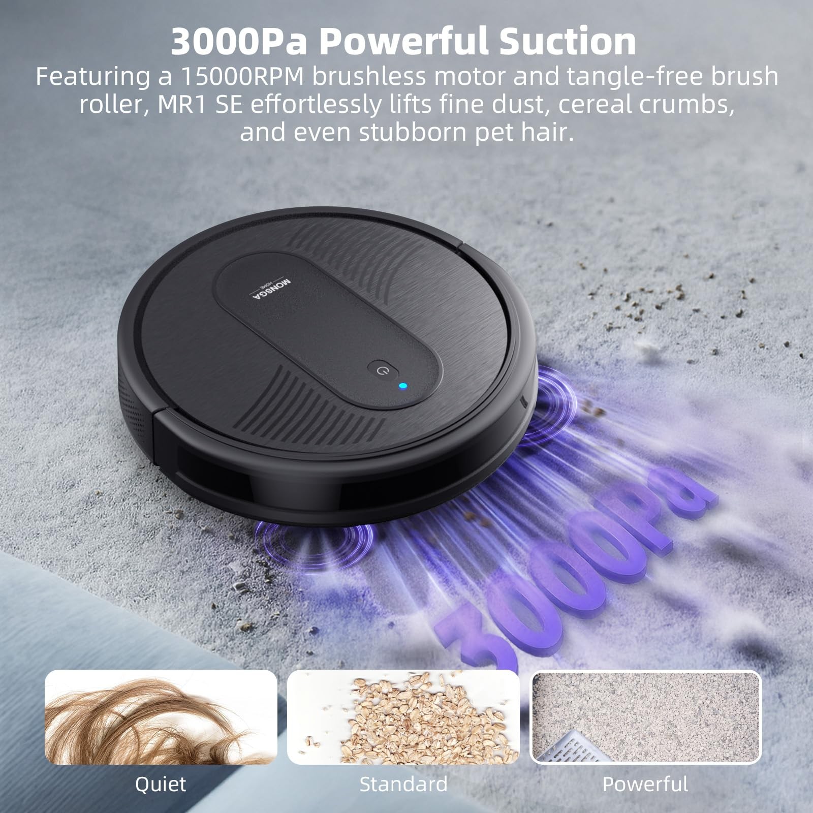 Robot Vacuum Cleaner, 3000Pa Powerful Suction Robotic Vacuum, 3.2" Super-Slim, 140Min Runtime, Vacuum Robot for Hard Floor/Low Pile Carpet/Pet Hair, Remote/App/Voice Control, Schedule Clean