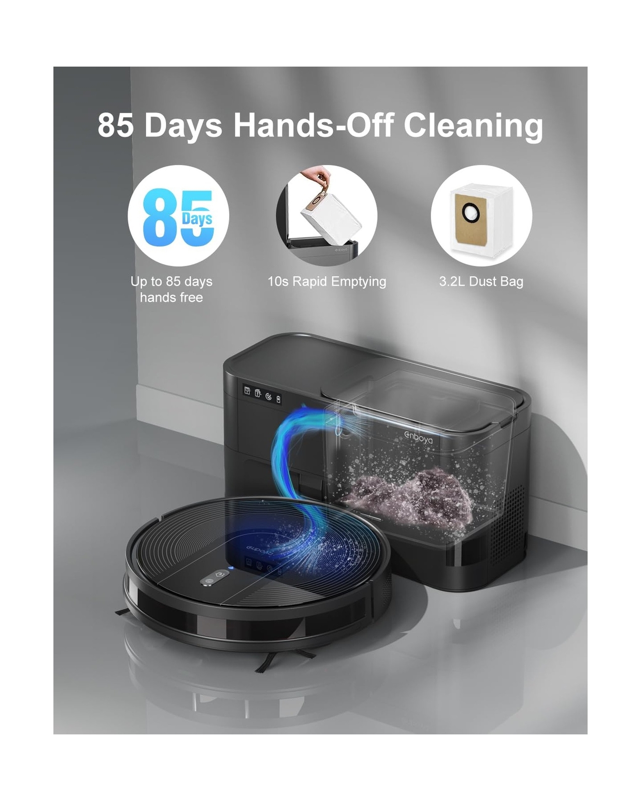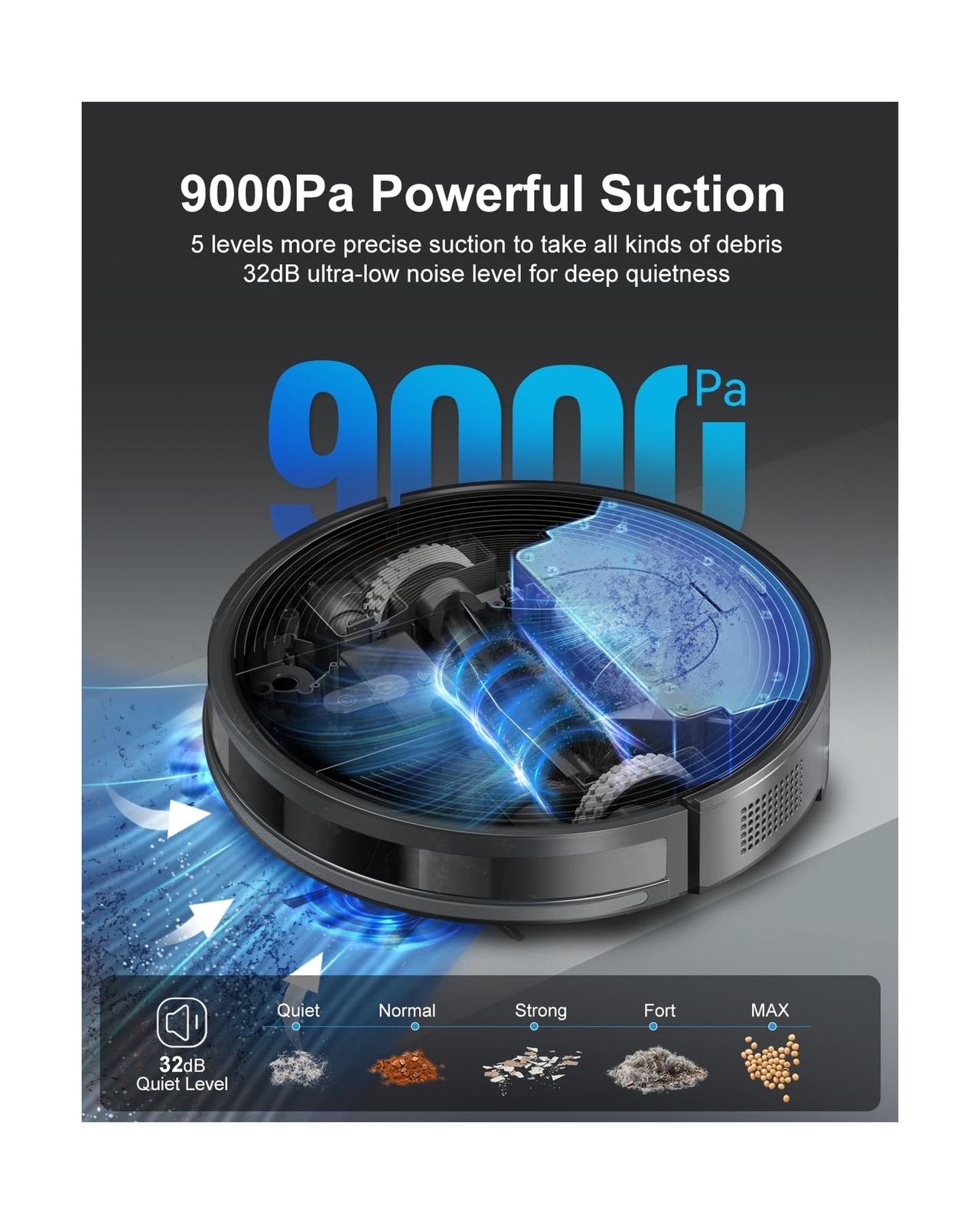 Robot Vacuum Cleaner with Self-Emptying Base – 9000Pa Suction, 85 Days of Dust Storage, Wi-Fi/App/Alexa Control – Ideal for Hard Floors, Low Carpets, and Pet Hair Product Details Brand: Kewbily Model Name: D60+ Special Feature: Cordless Color: Black Product Dimensions: 18.5"L x 14.4"W x 15.9"H Brand: Kewbily Model Name: D60+ Special Feature: Cordless Color: Black Product Dimensions: 18.5"L x 14.4"W x 15.9"H Included Components: Batteries included Filter Type: Sponge Battery Life: 200 minutes Capacity: 1 Pints Control Method: Voice UPC: 792105472195 Item Weight: 22 pounds Manufacturer: Kewbily Item model number: D60+ Batteries: 1 AAAA batteries required. (included) Batteries required: Yes [High-Capacity Self-Emptying Base]: The Kewbily D60+ comes with a large 3.2L self-emptying base, capable of storing up to 85 days of dust and debris. Enjoy truly hands-free cleaning with automatic dust disposal, reducing the need for frequent maintenance. [9000Pa Powerful Suction & Ultra-Quiet Operation]: Equipped with a high-performance motor, the Kewbily D60+ delivers an impressive 9000Pa suction, efficiently capturing dust, dirt, and pet hair from hard floors and low carpets. In quiet mode, it operates at just 32dB, ensuring a peaceful home environment. [Precision Navigation & Smart Obstacle Avoidance]: The D60+ follows an optimized zigzag cleaning route for maximum coverage. Its advanced sensors detect stairs and obstacles, preventing falls and collisions while ensuring thorough cleaning in every corner of your home. [200-Minute Runtime & Auto-Recharging]: With an extended 200-minute battery life, the Kewbily D60+ efficiently cleans large areas in a single session. When power runs low or cleaning is complete, it automatically returns to the self-emptying base to recharge, ensuring its always ready for the next job. Payment Back to Top We accept Paypal and All Major Credit Cards. Shipping & Handling Back to Top Item will be shipped FREE standard shipping in 1 business day after payment is received. Express Shipping services are available. Tracking number will be provided. Return Policy Back to Top Items can be returned for exchange or full refund within 30 days from the date you receive your merchandise. Please contact us before starting a return request, so we can resolve any issues and provide free returns if needed. Return shipping is the responsibility of buyer unless the return is a result of our mistake (i.e., your receive the wrong item). Contact Us Back to Top If you have any questions please contact us. We will respond within 1 business day or less.