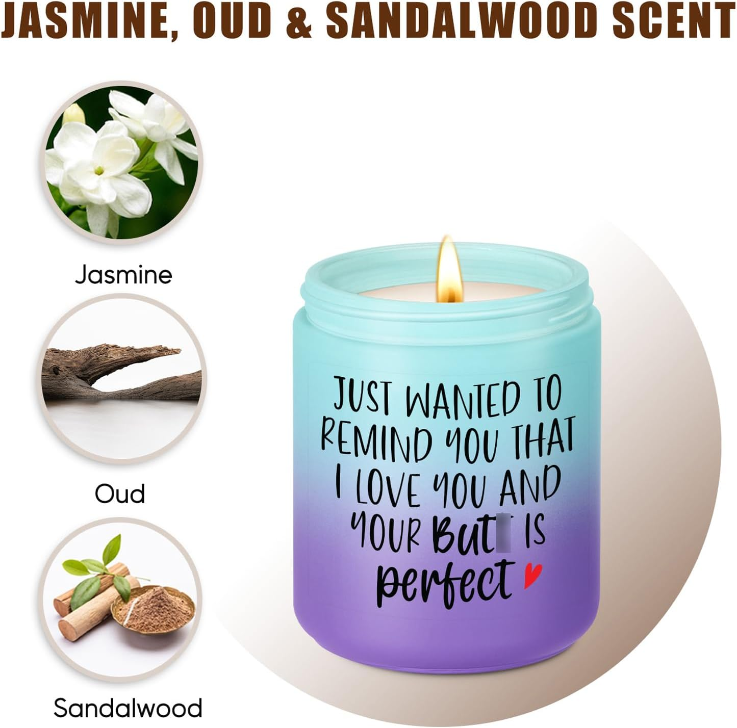Store New Arrivals Add to Favorite View Feedback Contact Candles - Romantic Gifts, I Love You Gifts, Valentines Day Gifts for Her, Him - Funny Anniversary, Birthday, Just Because Gifts for Wife, Girlfriend, Husband, Boyfriend, Fiance, Women, GF Description Product Dimensions 2.7"W x 3.5"H Number of Items 1 Color Aurora Item Weight 16 ounces Are Batteries Included No Shape Round Scent Jasmine, oud & sandalwood Specific Uses For Product Gift, Romance, Scented, Ambiance, Decoration, Relaxation, Stress Relief, Yoga, Meditation Indoor/Outdoor Usage Indoor Valentines gifts for her & him: Make this Valentines unforgettable with our scented candles featuring the funny and romantic message "Just wanted to remind you that I love you and your B is perfect"; The present for your wife, husband, girlfriend, boyfriend, or fiance, these candles add a touch of warmth and humor to your relationships I love you gifts for her & him: Express your love on any occasion with our specially crafted scented candles; Whether it's an anniversary, birthday, or just a heartfelt gesture, these candles ensure your thoughtful present becomes a cherished reminder of your love and appreciation; Choose the perfect moment to convey your affection with these humorous and romantic candles Clean burning & long-lasting love: Crafted from natural wax and a cotton wick, our candles provide a clean burning and a longer-lasting fragrance; With 50 hours of lasting affection in each 9 oz candle, you can infuse the air with love and warmth throughout special moments Natural fragrance for romantic evenings: Immerse the space in the scents of romance with our candles poured into reusable glass jars and scented with natural essential oils; These candles create a romantic and festive atmosphere, making them a great choice for any celebration Choose from 3 enchanting scents: Lavender is a romantic, attractive, and seductive scent; Cedar is a masculine, earthy, and woody scent; Jasmine, oud & sandalwood is a beautiful, intoxicating, and sensual scent; Each candle emanates a delightful and soothing aroma, making it a present to enhance the ambiance of your Christmas celebration Product Description Embrace the holiday atmosphere with our Valentines collection! Share the warmth and love of the season with our scented candles – the perfect gifts for your loved ones. Whether it's for your wife, girlfriend, husband, or boyfriend, our candles make for thoughtful and heartwarming presents. Lavender Lavender scent is gentle, delightful, romantic, seductive, attractive & soothing Lavender Lavender scent is gentle, delightful, romantic, seductive, attractive & soothing Cedar Cedar scent is woody, earthy, masculine, pleasant, comforting & calming Jasmine & Sandalwood Jasmine, oud & sandalwood scent is romantic, intoxicating, sensual, mysterious, fantastic & lovely Jasmine & Sandalwood Jasmine, oud & sandalwood scent is romantic, intoxicating, sensual, mysterious, fantastic & lovely 1 Lavender 2 Lavender 3 Cedar 4 Jasmine & Sandalwood 5 Jasmine & Sandalwood Funny & Romantic Gifts for Valentines Infuse your celebrations with candles that send a heartfelt message. Our candles feature a delightful message "Just wanted to remind you that I love you and your B is perfect." It's a perfect combination of humor and romance, adding a touch of laughter to your Christmas. Choose from our three enchanting scents to set the perfect mood. Lavender for romance, Cedar for a touch of masculinity, and Jasmine, Oud & Sandalwood for a beautiful and sensual atmosphere. Unforgettable Gifting Moments Make this Valentines memorable with the perfect gifts. Our scented candles, poured in reusable glass jars and scented with natural essential oils, convey your love and appreciation. A thoughtful and funny present for your wife, girlfriend, husband, or boyfriend that becomes a cherished reminder of your special moments. Experience the enchantment of clean burning! Our candles, made from natural wax and a cotton wick, promise 50 hours of lasting affection. Enjoy the inviting warmth and the delightful fragrance, creating an ambiance that captures the perfect fragrance of the season. Can it include a gift note message with the box? Yes. Listed under "this is a gift" in ordering page under location for delivery. Are the letters "U" and "T" blocked like in the picture? No, they’re not blocked. ABOUT US We offer the best prices around on high quality products. Our E-store includes media such as books, movies, music and games while offering electronics, toys, sporting apparel, clothing, tools, general home, garden items and more. SHIPPING We are always working hard to ensure your package arrives as soon as possible. Please understand that some factors like weather, high postal traffic, and the performance of shipping companies are outside of our control. We offer free shipping to the lower 48 states and ship within 2 business days of payment, usually sooner. We do not accept P.O. Boxes. Please provide a physical address. For shipping outside of the continental USA, we only use eBay's Global Shipping Program.The item is shipped to KY and then sent to the rest of the world. International customers are responsible for all duties and taxes. Continue to check out in order to calculate costs for shipping the item to your country. Messages regarding eBay's Global Shipping Program MUST be directed at eBay EXCLUSIVELY. RETURNS We offer a 30-Day Return Policy on items which you are not completely satisfied with. You have the option for a full-refund or an exchange of the item. No returns are available on items shipped outside of the USA. PAYMENT We accept PayPal. CONTACT US This page content is yet to come Please ad us to your favorite seller and visit again later Thank You CUSTOMER SATISFACTION We try our very best to make sure every customer is completely satisfied. If there's a problem, message us! We're happy to help. WE ACCEPT Copyright © 2021 AutoDS. | All Rights Reserved