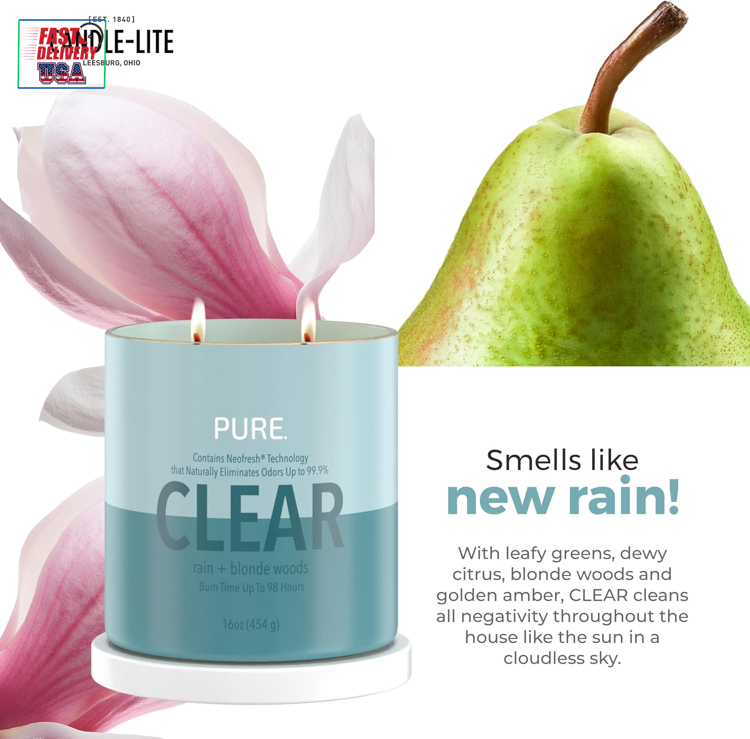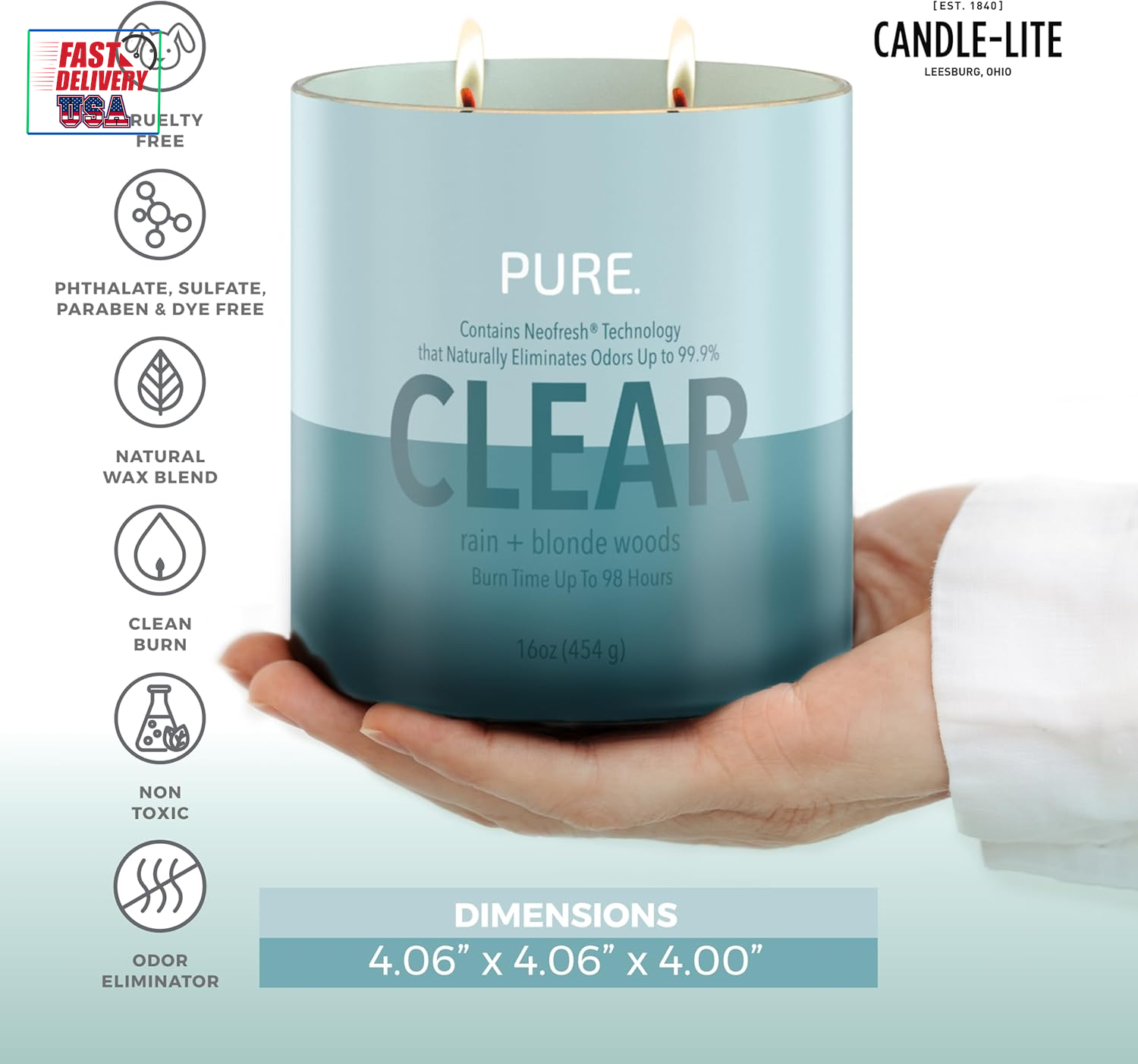 Store New Arrivals Add to Favorite View Feedback Contact Pure Rain & Blonde Woods Scented Candles, Ideal Valentines Day Gifts, Odor-Eliminating Neofresh Technology 99.9%, 16 Oz 2-Wick Jar, 98 Hours Burn Time Description Wick Quantity 2 Item model number 46291665E Style Modern Number of Items 1 Country of Origin USA Warranty Description N/a. Candle Type Container Candle Container Material Glass Unit Count 16.0 Ounce Batteries required No Material Soy Blend Wax Model Name Pure Scented Candles Package Information Jar Specific Uses For Product Aromatherapy Manufacturer Company Indoor/Outdoor Usage Indoor Item Weight 0.92 Kilograms Seasons All Season Occasion holiday/seasonal Special Feature Scented Color White Theme Nature Global Trade Identification Number 10076001872837 Shape Round Scent Clear (NEW) Product Dimensions 4"W x 4"H Size 16 oz VALENTINES DAY GIFT AROMATHERAPY CANDLE – Infuse your home with the refreshing essence of Leafy Greens and Dewy Citrus. As it burns, the warm base of blonde woods, white birch, and golden amber creates a cozy ambiance, making it an ideal choice for both men and women. Embrace tranquility and elegance with this delightful addition to your Valentines Day décor. TWO-WICK CANDLE – This candle boasts two wicks and burns for up to 98 hours. Its stylish design not only enhances your home décor but also creates a cozy ambiance, making it ideal for any gathering or relaxing evening at home. IDEAL FOR ANY ROOM – Bring the crisp, fresh scent into any space with this 16 oz candle. Whether you’re working in your home office, hosting friends for a summer gathering, or enjoying a relaxing evening at home, this candle is ideal for creating a bright and invigorating atmosphere. Ideal for enhancing your home décor or as a thoughtful gift for friends and family. VALENTINES DAY GIFT - Candle-Lite’s candles are an ideal choice for any gift-giving occasion, including Valentines Day gifts for her, him, friends, and family. These delightful scented candles enhance home décor and create a cozy atmosphere. They are suitable for Valentines Day decorations and serve as excellent stress relief gifts, adding warmth and joy to every celebration. Whether for anniversaries or simply as a thoughtful gesture, Candle-Lite candles make every moment special. CANDLE-LITE COMPANY – Lighting America’s hearts and homes since 1840, Candle-Lite Company has been crafting quality candles in Ohio’s heartland for over 180 years. We have a fragrance for you, whether it's floral, fresh, fruity, or gourmand. There is nothing like the fresh scent after a rainstorm. Washing away life’s worries and bringing on new beginnings. With leafy greens, dewy citrus, blonde woods and golden amber, CLEAR cleans all negativity throughout the house like the sun in a cloudless sky. ABOUT US We offer the best prices around on high quality products. Our E-store includes media such as books, movies, music and games while offering electronics, toys, sporting apparel, clothing, tools, general home, garden items and more. SHIPPING We are always working hard to ensure your package arrives as soon as possible. Please understand that some factors like weather, high postal traffic, and the performance of shipping companies are outside of our control. We offer free shipping to the lower 48 states and ship within 2 business days of payment, usually sooner. We do not accept P.O. Boxes. Please provide a physical address. For shipping outside of the continental USA, we only use eBay's Global Shipping Program.The item is shipped to KY and then sent to the rest of the world. International customers are responsible for all duties and taxes. Continue to check out in order to calculate costs for shipping the item to your country. Messages regarding eBay's Global Shipping Program MUST be directed at eBay EXCLUSIVELY. RETURNS We offer a 30-Day Return Policy on items which you are not completely satisfied with. You have the option for a full-refund or an exchange of the item. No returns are available on items shipped outside of the USA. PAYMENT We accept PayPal. CONTACT US This page content is yet to come Please ad us to your favorite seller and visit again later Thank You CUSTOMER SATISFACTION We try our very best to make sure every customer is completely satisfied. If there's a problem, message us! We're happy to help. WE ACCEPT