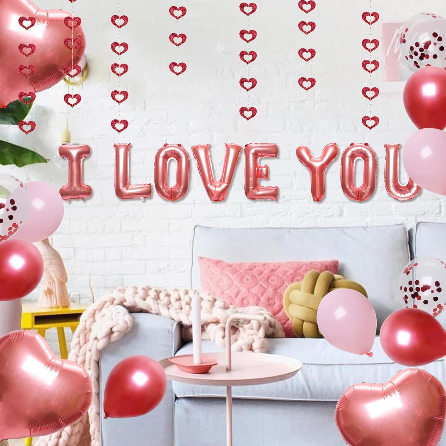 Valentines Day Balloons Kit I Love You Balloons for Him or Her Red Pink Rose Gold Love Balloon with Rose Petals Hotel Room Decor for Romantic Night Anniversary Mothers Day Wedding Decorations