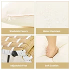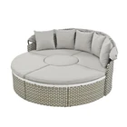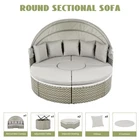 Round Sofa Set Rattan Daybed Sunbed with Retractable Canopy, Removable Cushion SKU: FS000017235362632322 Product Features [All-Weather Elegance & Durability] Experience year-round outdoor luxury with our beautifully crafted rattan daybed, designed to withstand all weather conditions. Made from high-quality PE rattan woven over a robust metal frame, this daybed combines elegance with resilience. The two-tone weave adds a contemporary flair, making it a stylish addition to any outdoor space. Its durability ensures that your investment remains as stunning as the day you bought it, regardless of the weather. [Versatile Comfort with a Retractable Canopy] Our round sectional sofa, which seamlessly transforms into an organized daybed, offers unparalleled versatility and comfort. The retractable canopy, easily fastened by straps, allows you to enjoy the sun or relax in the shade on your terms. This feature, coupled with the daybed's curved design, invites you to lounge in secluded luxury or engage with guests in a unique outdoor setting. [Functional Elegance with an Adjustable Table] At the heart of this daybed is an adjustable table that can be raised or lowered to suit your needs, whether it's serving snacks, holding drinks, or supporting a good book. This functionality is enhanced by a cushion that can be added to convert the table into additional seating. The washable covers and buttoned cushions ensure that your daybed remains pristine, making maintenance effortless and keeping your outdoor space elegant and inviting. [Unmatched Comfort & Maintenance Ease] This daybed is meticulously designed to ensure maximum comfort, featuring five foam-filled pillows and cushions for you and your guests to sink into. The adjustable feet guarantee stability on any surface, enhancing your comfort. The convenience of washable cushion covers means that keeping your daybed looking fresh and vibrant is as simple as a quick wash, allowing you more time to relax and less time worrying about upkeep. [Dimension & Notes] Overall size: 66.5 x 65 x 53.5 inches(LxWxH); Ottoman: 45.3 x 20.9 x 15.8 inches(LxWxH); Coffee table: 22.4 x 22.4 x 15.8/22.8 (Normal height/ Maximum height) inches(LxWxH). For more size, please refer to the size image. Warm Notice: 3 boxes in total which may not come together. Description All-Weather Elegance & Durability Experience year-round outdoor luxury with our beautifully crafted rattan daybed, designed to withstand all weather conditions. Made from high-quality PE rattan woven over a robust metal frame, this daybed combines elegance with resilience. The two-tone weave adds a contemporary flair. Versatile Comfort with a Retractable Canopy Our round sectional sofa, which seamlessly transforms into an organized daybed, offers unparalleled versatility and comfort. The retractable canopy, easily fastened by straps, allows you to enjoy the sun or relax in the shade on your terms. Functional Elegance with an Adjustable Table At the heart of this daybed is an adjustable table that can be raised or lowered to suit your needs, whether it's serving snacks, holding drinks, or supporting a good book. This functionality is enhanced by a cushion that can be added to convert the table into additional seating. Highlights&Summary Highlights All-Weather PE Rattan // Metal Frame // Retractable Canopy // Canopy Fastened by Straps // Round Sectional Sofa // Organized Daybed // Adjustable Table // Table w/ Cushion // Washable Covers // Buttoned Cushions // 5 Pillows // 5 Cushions// Two-Tone Weave // Adjustable Feet // 2 Colors Available Summary Elevate your outdoor comfort with our All-Weather PE Rattan Daybed. This elegantly designed piece features a durable metal frame and a retractable canopy secured by straps. The round sectional sofa doubles as an organized daybed, complete with an adjustable table. Enjoy easy maintenance with washable covers and stylish buttoned cushions. It includes 5 cozy pillows and cushions, crafted with two-tone woven rattan. Adjustable feet ensure stability on any surface, and you can choose from 2 chic color options to suit your outdoor space. Weight&Dimensions&Specifications Overall Product Dimension Overall size: 66.5 x 65 x 53.5 inches(LxWxH); Ottoman: 45.3 x 20.9 x 15.8 inches(LxWxH); Coffee table: 22.4 x 22.4 x 15.8/22.8 (Normal height/ Maximum height) inches(LxWxH) Overall Weight 2 Loveseat with canopy: 41.9bs; Per ottoman: 13.6 lbs; Coffee table: 10.1 lbs Weight Capacity Loveseat: 350 lbs per seat; Ottoman: 350 lbs; Coffee table:200 lbs Material PE Rattan+Steel+Polyester Fabric+Foam Pieces Included 2 Loveseats + Canopy + 2 Ottomans + 1 Coffee Table Color Beige/ Gray Assembly Required Yes Additional Tools Required All Tools Included Country of Origin Vietnam Product Warranty Please Read Return Policy Maintenance&Notice Outdoor Furniture Care To remove dirt and debris, vacuum with a dust- brush attachment or use a dry paintbrush. Clean with a mild soap solution, scrub with a sponge, rinse with cold water and dry completely. When outdoor furniture is not in use, we recommend covering all the furniture to protect it against the elements. Assembly Notice Please read assemble manual in advance. Please do not over-tighten nuts, as this may cause distortion or breakage. Color Notice Items may slightly differ from photo in terms of color due to the lighting or your monitor's display. Size Notice Manual measurement has been used, there may be some reasonable error. AUTO