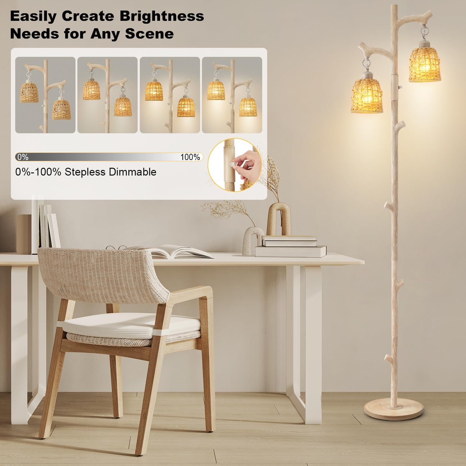 $ 57.55Table Lamp, Dimmable LED Floor Lamp with Remote Combo, Natural Wood