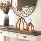 Rustic Farmhouse Lanterns Decorative Indoor Set of 2 - Vintage Wood Brown Product Details Color: Brown Material: Wood Brand: Staymoment Product Dimensions: 6.88"L x 6.88"W x 10.23"H Finish Type: Powder Coated Item Weight: 1.4 Pounds Number of Pieces: 2 Theme: Festival, Wedding, Nautical Mounting Type: Tabletop Manufacturer: Staymoment Item Weight: 1.37 pounds Country of Origin: China Wood Beaded Lantern: Upgrade your space with a farmhouse touch using a brown wooden Beaded frame. The lantern's unique design, Simple and durable, complements various decor styles, It's the perfect addition to farmhouse decor in your living dining room or outdoors & co. Set of 2 Candle Holder: 2 Different sizes of farmhouse decor, small: 4.72" L * 4.72" W * 8.66" H, Large: 6.88" L * 6.88" W * 10.23" H; Universal size for most occasions - Uses tea light, votive or pillar scented candles, LED candle. NOTE: When using real candles, ensure fire safety. High Quality & Durable: This decorative candle lantern, crafted from high-quality wood, features firmly embedded wood beads, making it more stereoscopic. With a unique distressed brown wood arch in farmhouse style, it boasts a simple, sturdy design adaptable to various decorative styles. Hanging Lantern: Our farmhouse design lightweight lantern comes with a sturdy metal ring for easy hanging & portable; Also its flat base allows it to sit on a flat surface - used as a freestanding lamp. NOTE: Candles are not included. Multifunctional Home Decor: This Lantern acts as more than a fireplace Mantle & shelf decor, table centerpiece for home, porch, wedding, outdoor night parties; Also You can add a festival atmosphere to Halloween, Diwali, Christmas, Easter, Thanksgiving.
