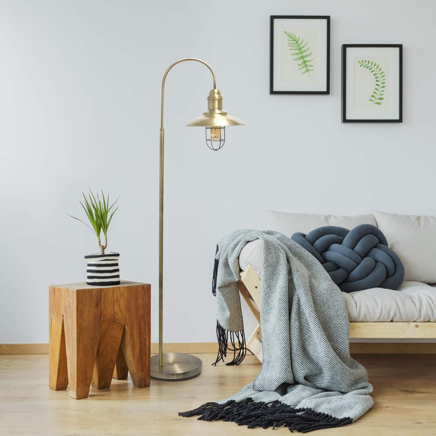 $ 20.05Mid Century Modern Gold Floor Lamp for Living Room Bedroom Brass Standing Light
