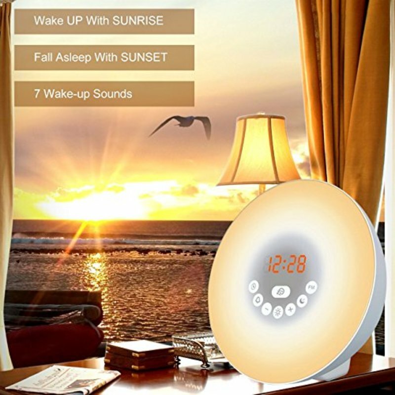 SDlife Wake Up Light FM Radio Alarm Clock, Nature Night Light with 7 Colors, Nature Sounds, FM Radio, Touch Control and USB Charger 2 AAA Batteries Required (Not included)