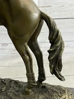 SIGNED ORIGINAL JOCKEY WITH HORSE BRONZE MARBLE SPORT HOT CAST SCULPTURE FIGURE SIGNED ORIGINAL JOCKEY WITH HORSE BRONZE MARBLE SPORT HOT CAST SCULPTURE FIGURE Condition : This sculpture is in a perfect condition. Bronze Dimensions with Marble Base: Height 13" X Width 12" Marble Dimensions:12" X 5" Height without base:12" Weight:17 LBS Inventory:53YRD11828935 Get ready for the ultimate race of your life with this magnificent bronze sculpture. Featuring a determined thoroughbred and its skilled jockey, they are prepared to leave their competitors in the dust. With full speed and power, the horse gallops on the grass track, its muscles defined and chest bulging with energy. The jockey, focused and resolute, urges the horse forward, kicking his heels and maintaining perfect balance in the stirrups. Every detail is intricately crafted, from the horse's flowing mane to the intense expression on the jockey's face. This action-packed piece is a true centerpiece that demands attention and is perfect for showcasing your love for horses and the thrill of the race. This remarkable bronze sculpture captures the spirit and determination of the horse and jockey as they strive for victory. The dynamic pose of the horse, with its tail flying in the wind, conveys the exhilarating speed and strength of the race. The finely sculpted muscles and the untouched grass track evoke a sense of realism and intensity. Mounted on a sleek black marble base, this sculpture stands as a symbol of triumph and achievement. It is a fantastic gift for any passionate horse lover or anyone who embodies the drive and determination to reach their goals. Handmade with precision using the ancient lost wax casting technique, this sculpture is a timeless piece of art that will be cherished for years to come. Experience the thrill of the race with this stunning bronze sculpture. Depicting a powerful thoroughbred and its dedicated jockey, this artwork encapsulates the intensity and excitement of the competition. With the horse in full stride, its muscles rippling and hooves pounding the grass track, it is clear that victory is the only option. The jockey, with a focused expression and heels firmly planted in the stirrups, guides the horse towards the finish line with unwavering determination. The attention to detail in this sculpture is remarkable, from the intricate texture of the horse's coat to the subtle expressions on the jockey's face. Crafted using the traditional lost wax method, this handmade bronze sculpture showcases the artist's skill and passion for capturing the essence of the race. Finished with a rich brown patina, it exudes a timeless elegance that will enhance any space. Mounted on a sleek black marble base, this sculpture is a true testament to the spirit of competition and makes a perfect gift for horse lovers and those who appreciate the thrill of the race. Hot Cast Original American Artist Fisher Jockey Bronze Sculpture Marble Base Art www.bronzhaus.com Video will open in a new window Using the eBay App? Paste link into a browser window: [isdntekvideo] Shipping Terms : Most of our items are shipped via USPS (United States Postal Service) mail or UPS. Most orders are shipped within 24-48 hours of purchase. Please be aware that not all items are available for USPS shipping due to size and weight. We do ship to Hawaii, Alaska, Canada, Puerto Rico, APO/AE, and U.S. Virgin Islands, however, an additional charge may be required. Please contact us before making any purchases in these areas. For Non-USA customers, you may be responsible for all duty, tax, brokerage fees that may be due upon delivery (shipping costs cover freight charges only). We also ship internationally. Please refer to the "Shipping and Handling" chart for the rates for each area. Payment : We accept just about any form of payment. PayPal, Master Card, Visa or American Express credit cards. Money orders, cashiers checks, and even personal or business checks. For governmental institutions, we will also accept a purchase order. Please understand that for personal or business checks we have to wait for the check to clear (usually 7 days) before shipping. Condition : New Detailed Hand Crafted Hot Cast Bronze Satisfaction Guaranteed. This is Stock Photo, Slight Color Variation!! Listing and template services provided by inkFrog