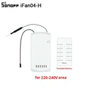 SONOFF iFan04 Wifi Smart Fan Switch Celling Fan/Light Controller 433 RF/eWelink APP/Voice Remote Control Adjust Speed Smart Home Looking for a smart switch to easily control the ceiling fan with light being hung on the top? Stop seeking for! SONOFF iFan04 is what you need. iFan04, the new version of iFan03, more stable in performance, which is a Wi-Fi ceiling fan and light controller supported to control the ceiling fan with light using your phone wherever you are. Voice control is designed to make you easily command iFan04 to turn on or off the fan and light, no need any manual operation. Support to control the ceiling fan with light from your phone wherever you are and whenever you want. Schedule for it to turn on and off at daytime or nighttime, or anytime throughout the day, and it will turn on or off automatically. Supplied with a RM433 remote controller where you can adjust the fan among the low, medium and high speed for getting different levels of cool feeling. The scenes feature in the app allows you to control one or multiple SONOFF devices, quickly and simultaneously with a single tap. Realize All Controls via APP Manage the ceiling fan with lights through the eWeLink app, either at home or remotely. Choose Your Desired Coolness Level Adjustable 3 fan speeds make your room comfortable. Understand Your Commands Compatible with Amazon Alexa and Google Home, just ask iFan03 to turn on/off the ceiling fan speed. Schedule the Uptime & Downtime Set a time/countdown for your ceiling fan with lights. It will automatically turn on/off the light once the preset interval ends. Replace the APP Control Equipped with a RM433 remote controller that easily controls your ceiling fan from one source. Share Devices, Share Control Start the freedom of device-sharing to control the ceiling fan with your family together. Sync the Run Status Sync real-time working status to your phone to ensure you always know which of your device is on or off.
