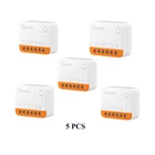 SONOFF MINIR4 WiFi Smart Switch 2 Way Control Mini Extreme Smart Home Relay Support R5 S-MATE Voice Via Alexa Google Home Description MINIR4 is a mini extreme WiFi smart switch equipped with ESP32 chip, that turns traditional switches into smart switches, automating lights and electronic devices, and tiny size fits in various mounting boxes, including the smallest EU-type/86 type/120 type mounting box. MINIR4 supports external switch control and easily connects to the momentary switch, door exit switch, SPDT switch, latching switch, and even dry contact sensors. MINIR4 has "detach relay" mode, which means the states of external switches and relay are separated, so operating the external switch button won't affect the relay state. Such as, if you open detach relay" mode, when you turn off the light, your smart light won't be offline, and you still can use App to control smart lights. It also support the function of “eWeLink-Remote“.After pairing with MINIR4, MINIR4 can be controlled locally by S-MATE or R5 through "eWeLink-Remote" signal, and trigger other smart devices in the smart scene. (S-MATE and R5 doesn't included in the package, please purchase seperately. Click here to check R5 ) Mini than Ever, Adapts to Various Boxes A brand new product that turns traditional switches into smart switches, automating lights and electronic devices. It's 40% smaller than MINIR2, fits in various mounting boxes, including the smallest European standard ones. Ultra-fast ESP32 Chip The ESP32 chip is a highly sought-after solution for smart home products, boasting exceptional safety and reliability. With its speedy dual-core performance and ample memory, you can trust its ability to provide long-lasting and stable operation. Comprehensive Safety Guarantee SONOFF always prioritizes safety and designs products in strict accordance with certification requirements. Our products passed CE, FCC, and more stringent TüV certifications. Detach Relay "Detach Relay" means the states of external switches and relay are separated, so operating the external switch button won't affect relay state. As below, the smart light won't be offline after enabling "Detach Relay", and can App control smart lights. Transform Your Switches with Seamless Compatibility Easily connect to momentary switch, door exit switch, SPDT switch, latching switch, and even dry contact sensors. Multiple Control Method After pairing with MINIR4, both R5 and S-MATE can act as remote controllers to control MINIR4 locally through the eWeLink-Remote signal. Additional Protection Delay Power-on State If power is restored after a power outage, set some appliances to delay the execution of the power-on state. Avoid all appliances turning on simultaneously, causing high currents to damage appliances and leaving potential safety hazards. Smart Scene Works with motion sensors, door and window sensors, and more to automate your home.