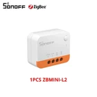 SONOFF ZBMINIL2/ZBMINI No Neutral Wire Required Smart Home Zigbee Wireless EWeLink Alexa Google APP/Voice Control Switch Module Note: ZBMINI-L2 must be used with Zigbee Bridge. SONOFF ZBMINIL2 is 40% smaller than ZBMINIL, which will make it take up less space in the mounting box, suitable for most size boxes, and leave more space for DIY modification. Although ZBMINIL2 is smaller, it has many functions, no neutral wire required, two-way control, smart timer/ scene, supports two types of wall switch,etc. Tiny Size Beyond Your Imagination The tiniest smart switch, can be easily fit in the smallest EU-type mounting box. How to DIY Your Smart Dream Home? *Make sure to be powered off before wiring. Application Scenes >>>Two-way Control Achieve two-way control for your staircase light. >>>Scene Linkage Scene linkage makes your life easier. >>>Smart Timer Setting a smart timer to open your backyard lights when sunset. Simple And Reliable No Anti-flicker module is required, it can normally work even the light is as low as 3W. Exquisite Craftsmanship For High Quality One Voice Command, One Action Compatible with More Zigbee Hubs Work with Amazon Alexa Echo Speaker (Bult-in Zigbee hub, no need for extra Zigbee Hub.)