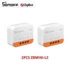SONOFF ZBMINIL2/ZBMINI No Neutral Wire Required Smart Home Zigbee Wireless EWeLink Alexa Google APP/Voice Control Switch Module SONOFF ZBMINI-L2 Zigbee DIY Smart Switch Module No Neutral Wire Required 2 Way Control For Smart Home Automation Note: ZBMINI-L2 must be used with Zigbee Bridge. SONOFF ZBMINIL2 is 40% smaller than ZBMINIL, which will make it take up less space in the mounting box, suitable for most size boxes, and leave more space for DIY modification. Although ZBMINIL2 is smaller, it has many functions, no neutral wire required, two-way control, smart timer/ scene, supports two types of wall switch,etc. Tiny Size Beyond Your Imagination The tiniest smart switch, can be easily fit in the smallest EU-type mounting box. How to DIY Your Smart Dream Home? *Make sure to be powered off before wiring. Application Scenes >>>Two-way Control Achieve two-way control for your staircase light. >>>Scene Linkage Scene linkage makes your life easier. >>>Smart Timer Setting a smart timer to open your backyard lights when sunset. Simple And Reliable No Anti-flicker module is required, it can normally work even the light is as low as 3W. Exquisite Craftsmanship For High Quality One Voice Command, One Action Compatible with More Zigbee Hubs Work with Amazon Alexa Echo Speaker (Bult-in Zigbee hub, no need for extra Zigbee Hub.)