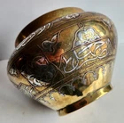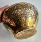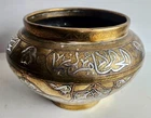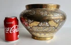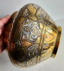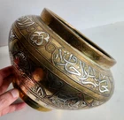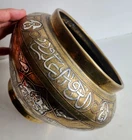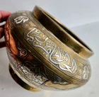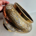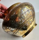 On offer is a wonderful old Islamic brass Cairoware bowl or planter. Fine example which is beautifully inlaid with silver - see photos. Stunning large bowl - great statement piece. It stands approx 16.5cm tall and has a diameter of approx 25cm. It weighs 1,552g. Very good overall condition. Hopefully useful to a collector. I will ship overseas via the Ebay Global Shipping Programme. Please take a look at the other fine pieces I am selling this week. ANY QUESTIONS PLEASE ASK. Please take a look at my listings ..... new items added every week!!!