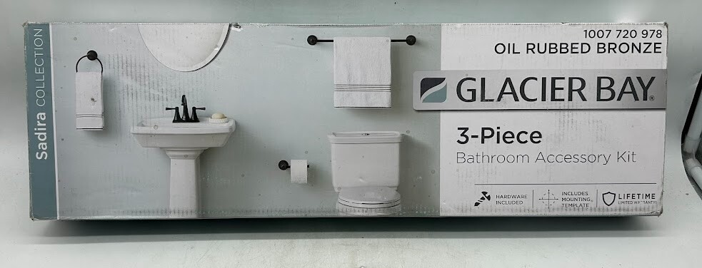 This is a NEW OPEN BOX item. Upgrade your bathroom with the Glacier Bay Sadira Bathroom Hardware Set , featuring a Single Post Toilet Paper Holder, 24 in. Towel Bar, and Towel Ring . Designed in a popular transitional style with European-inspired details, this set provides a sleek, modern look while ensuring functionality and durability. The matte black finish complements a wide range of bathroom décors, making it a perfect addition to both contemporary and traditional spaces. Key Features: Complete Set: Includes a toilet paper holder, 24 in. towel bar, and towel ring for a coordinated bathroom design. Euro-Style Toilet Paper Holder: Features a single post design with a bolt end to keep the roll in place. Convenient Towel Ring: Elevated post design makes hanging and drying towels easier while adding a stylish touch. Durable 24 in. Towel Bar: Provides ample space for hanging bath towels and hand towels. All-Metal Construction: Ensures strength, durability, and long-lasting performance. Easy Installation: Comes with all necessary mounting hardware for quick and hassle-free setup. Why Choose the Glacier Bay Sadira Set? Stylish & Functional: The transitional design seamlessly blends with various bathroom styles. Space-Saving & Practical: Keeps towels and toilet paper organized while adding an elegant touch. Corrosion-Resistant Finish: The matte black coating resists rust and moisture, ensuring long-lasting beauty. Perfect for bathroom renovations or upgrades , the Glacier Bay Sadira Bathroom Hardware Set offers aesthetic appeal, durability, and effortless installation , making it an excellent choice for any home.