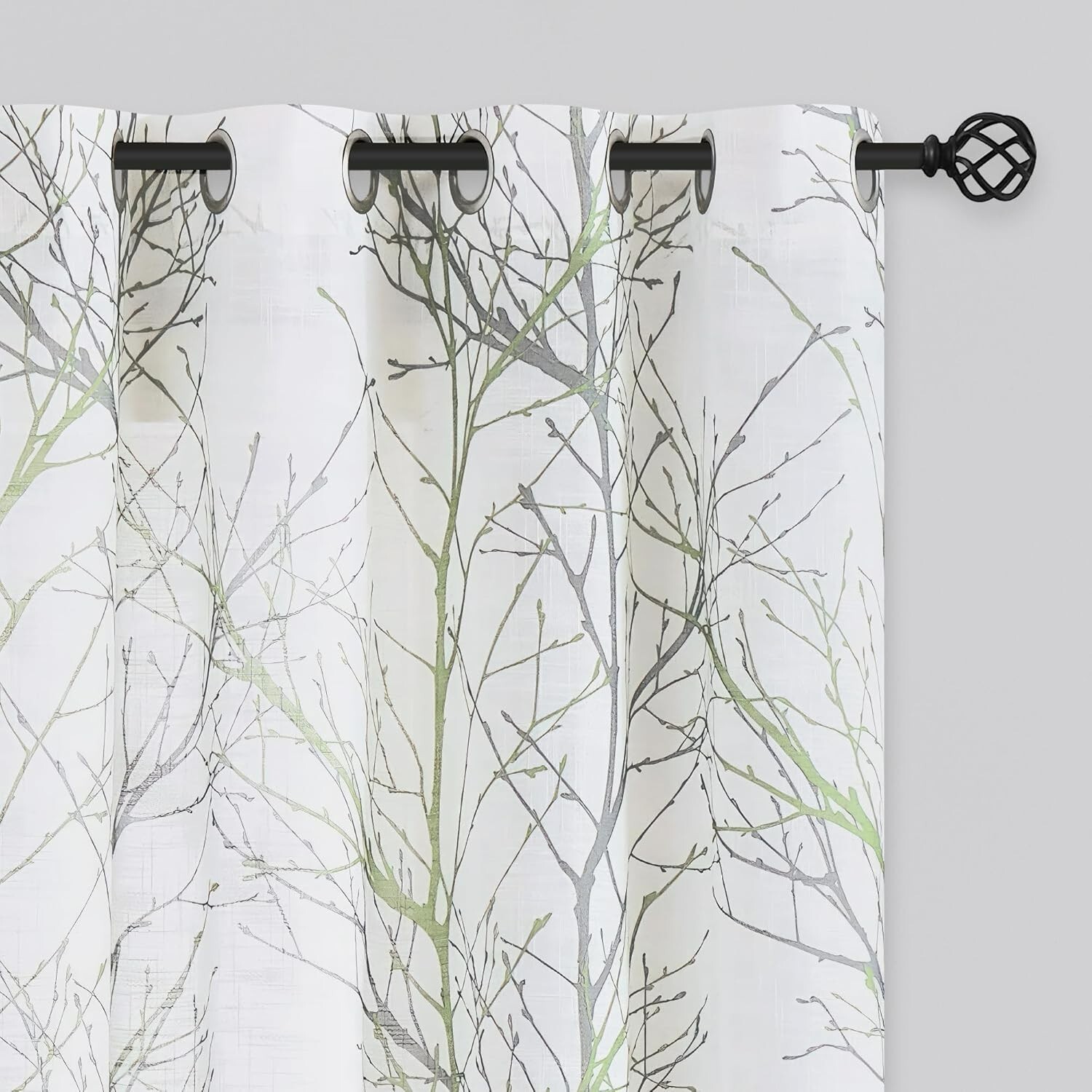 Linen Semi Sheer Curtains for Bedroom, Sage Green White Curtains 54 Inches Long for Living Room, Grey Tree Branch Print Curtain Light Filtering Kitchen Window Drapes, Grommet Top 2 Panels Ready Made Curtains: Sold in pair, 50" w x 54" /panel, 100" w x 54" /pair, Green grey branch on white curtains. Recommend ordering 2 to 3 times rod width for proper look and fullness Naturas Inspired Pattern: Green and grey tree branch print on white background open weave linen Semi Sheer inspires a modern aesthetic twist with the bold and dramatic natural painting pattern Light Filtering & Privacy: Featuring a lovely tree branch design, these curtains strike a perfect balance between functionality and aesthetics. They provide sufficient privacy while allowing ample light to enter, keeping the indoors bright and airy Grommet Top Curtains: 8 silver grey grommets fit any standard or decorative curtain rods up to " in diameter. Easy and convenient to hang. These printing window curtains are perfect for living room, bedroom, kitchen, porch Easy Care: The curtains offer great durability. Machine washable in cold water. Tumble dry low. Quick iron or steam clean at low temperature settings. Feel free to contact me for any product problem, we will certainly respond within 12 hours