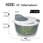 Effortless Salad Preparation: The salad spinner makes preparing fresh, crisp salads a breeze. With just a few spins of the handle, you can wash and dry your greens, ensuring they’re free from excess water. Enjoy restaurant-quality salads right at home Easy use and clean: No installation required. All parts are separate for easy use and clean. Just wash with mild soap and damp with soft fabric, saving you time and effort. Its compact, stable design makes it easy to store in your kitchen cabinets Versatile salad spinner, dryer, washer: This salad spinner isn’t just for salads—use it to dry herbs, rinse fruits, or even drain pasta. The large capacity bowl doubles as a serving dish, and the inner basket can be used as a colander Large Capacity: The clear bowl is made from food grade thickened ABS. 4 L capacity ( 4.2 quarts) means you can process 3-4 servings of salad at a time, ideal for family meals or entertaining. You can prepare enough salad for everyone in one go Ergonomic design: The lid is equipped with a drainage system that you can drain water without opening the lid. 4 non-slip pads on the bottom to keep the greens spinner stable