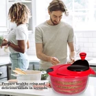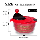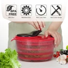 Effortless Salad Preparation: The salad spinner makes preparing fresh, crisp salads a breeze. With just a few spins of the handle, you can wash and dry your greens, ensuring they’re free from excess water. Enjoy restaurant-quality salads right at home Easy use and clean: No installation required. All parts are separate for easy use and clean. Just wash with mild soap and damp with soft fabric, saving you time and effort. Its compact, stable design makes it easy to in your kitchen cabinets Versatile salad spinner, dryer, washer: This salad spinner isn’t just for salads—use it to dry herbs, rinse fruits, or even drain pasta. The large capacity bowl doubles as a serving dish, and the inner basket can be used as a colander Large Capacity: The clear bowl is made from food thickened ABS. 4 L capacity ( 4.2 quarts) means you can process 3-4 servings of salad at a time, ideal for family meals or entertaining. You can prepare enough salad for everyone in go Ergonomic design: The lid is equipped with a drainage system that you can drain water without opening the lid. 4 non-slip pads on the bottom to keep the greens spinner stable