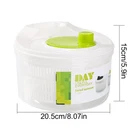Bullet Points: Safe Material: Made from high-quality, food-grade PP material, this Fruit Spinner has good durability - resistant to damage and wear for perfect performance Double-layer Performance: The Double-layer Separated Design of the Fruit Spinner ensures quick and easy splitting of fruits for use, providing a flexible and effective solution Ergonomic Handle: Say goodbye to cumbersome fruit-spinner with our Fruit Spinner. Its ergonomic design boasts a comfortable rounded handle, enabling 360 easy rotation and a satisfying feel Use Conveniently: The Fruit Spinner features an innovative pressure system that ensures a high-speed spinner for quicker drying, making your kitchen tasks more efficient Widely Used: Revolutionize your kitchen tasks with our Fruit Spinner which can be used in various ways like salads, vegetables, and fruits. It effortlessly enhances work efficiency and is perfect for daily use This Small Salad Spinner is perfect for family dinners and daily use. Its sturdy and wear-resistant double layer design makes for a good feel and easy to use. Specification: Product Name: Salad Spinner Product Color: green Product Size: about 20.5x20.5x15cm/8.07x8.07x5.91 inches Product Weight: 310g Product Material: PP Capacity: 3L Product List: 1* Salad Spinner Notes: Due to the lighting effects and filming angles, there is a color difference in the product, please understand. Due to manual measurement, there is a tolerance in the product size. The actual product shall prevail, thank you!
