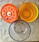 Display item, that’s why rubber feet on bottom are dirty. Easily clean lettuce/veggies. Top locks down for easy storage. Removable basket. Rubber feet on bottom keep it sturdy while using. No brand shown on item.