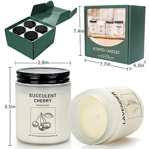 Candles Exquisite Fragrance Collection: Our set includes four unique scents designed to stir your senses: calming lavender, indulgent vanilla ice cream, cozy black cherry, and zesty orange ginger. Natural Soy Wax : Made with pure soy wax and premium scented oils, this scented candle provides a healthy, safe aroma in your home. Candle jars can also be used as home decorations, storage containers or mini planters. Long Lasting Candles: Each candle contains 7.1 ounces of soy wax, ensuring that each candle will burn for 45-55 hours, and trimming the wick can help even burn and increase burn time. Candles For Home Scented :Scented candles are suitable for bathing, dating, health care. It provides aromatherapy, creates a mood-boosting atmosphere for you and your guests to relax, effectively relaxes and relieves stress, suitable for bathrooms, living rooms, bedrooms, kitchens, yoga rooms and more. Candles Gifts for Women Men: The best everyday gift for him or her, a colleague or someone special. Made of soy wax, high quality oil and cotton wick, these candles are perfect for any special occasion such as Mother's Day, Valentine's Day, Anniversary, Thanksgiving, Christmas, Birthday, Wedding, Family Gathering Gifts and more.
