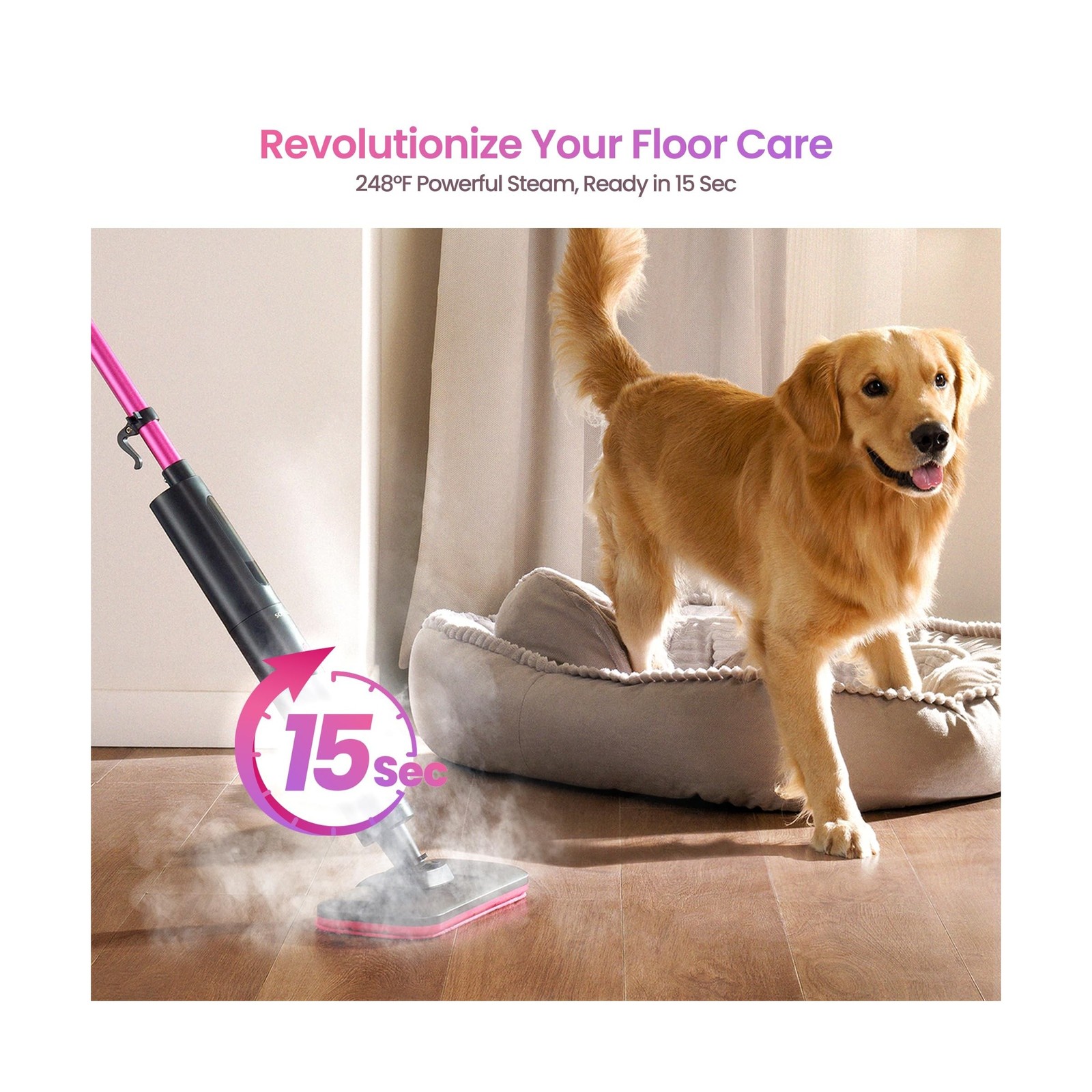 This steam mop is a total game-changer! It heats up in seconds and effortlessly tackles stuck-on grime and pet messes without any chemicals. The lightweight design makes cleaning floors and walls so easy, leaving everything sparkling fresh. Love how it stands on its own too!