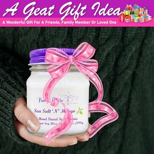 Handmade Coconut & Soy Wax Candles, 7oz Candles made with Organic Coconut Soy Wax, Handmade & Hand Poured Candles for Men & Women’s Gifting, Coconut Soy Candles with Zinc & Lead Free Wicks Illuminate Your World With Indulgent Luxury! Enjoy the gorgeous, artisan glow of our hand-poured Coconut & Soy Blend Natural Wax Candles, giving you the perfect relaxing glow & subtle scent that is made with premium fragrance oils infused with essential oils for a truly enchanting ambience! Your Allergy Friendly Aroma Oasis! Our secret ingredient? Coconut Soy Wax Candles, meticulously blended for a gentle & soothing scent that won't overwhelm your senses! Ideal for allergy-sensitive individuals to transform your space into a sanctuary of delightful fragrances! Choose from Cardamom Latte, refreshing Sea Salt Mango, indulgent Berries 'N' Dreams, and Paradise Island. Perfect gift for Birthdays, Mother's Day, Christmas, Thanksgiving, Valentine's Day and other holidays, our candles are a great gift for women and men adding a welcoming ambience to your home. Our candles are Paraffin Free and are made of Natural Coconut Soy Wax. candles are eco friendly and are made with Zinc Free and Lead Free Cotton Wicks. candles also come in a 8 oz reusable mason jar. Sea Salt N' Mango, fragrance notes of Sea Salt, Amber, Peach, Mango, Sandalwood, Peach. Candles are made with phthalate free fragrance oils and essential oils. Candle Care Essentials: Trim wick to 1/4 in before lighting each time to minimize sooth and large flames. Burn candle so wax pool reaches jar edge to prevent wax tunneling. Burn candle no more than 4 hours at a time. Keep candle in safe spot, away from fans, hot surfaces, children and pets. Never leave a burning candle unattended!!!