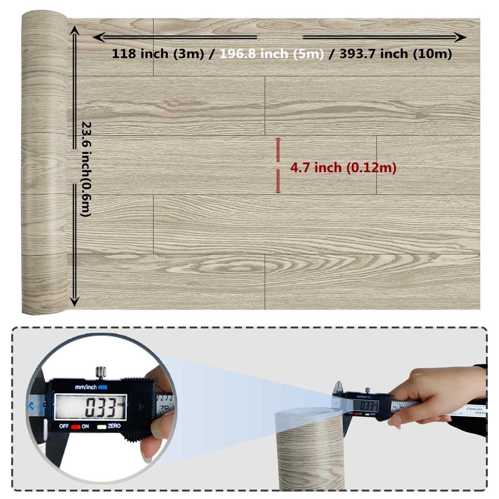 floor stickers are made of PVC materials that feature a slip-resistant, wear-resistant, and flame-retardant surface that is easy to clean and install. The water-resistant film allows for worry-free cleaning on various surfaces, including tiles, marble floors, wood floors, cement, and self-leveling floors. Ideal for any space, these stickers offer excellent sound insulation and heat preservation. Upgrade your floors with ease! 【Vinyl Flooring Roll】Our vinyl flooring is conveniently rolled up, providing significant advantages compared to traditional tile and strip floor stickers. It reduces material usage, seam requirements, and installation time, making it easier to handle, transport, and store. 【Quick and Easy Installation】Our peel and stick vinyl flooring is extremely easy to install and requires no special tools or adhesives. Simply peel off the backing and stick them onto any flat and clean surface. 【Waterproof and Wear-resistant 】Created with a precise 5-layer manufacturing process, our peel and stick floor tiles are designed to endure daily wear and tear. Not only are they waterproof, but they also resist dirt and damage. Cleaning them is effortless, just like maintaining a regular floor, so you can enjoy peace of mind. 【First Choice for Rental Houses】Our thin vinyl plank flooring is an ideal choice for rental homes, as it offers an economical and convenient way to remodel without damaging the existing flooring from adhesive. 【Attention】Please note that this vinyl flooring is thin, measuring just 0.3mm in thickness. Consider the thickness factor before making your purchase. While it may resemble contact paper, it features a special anti-wear layer for enhanced adhesion and durability on the floor surface.