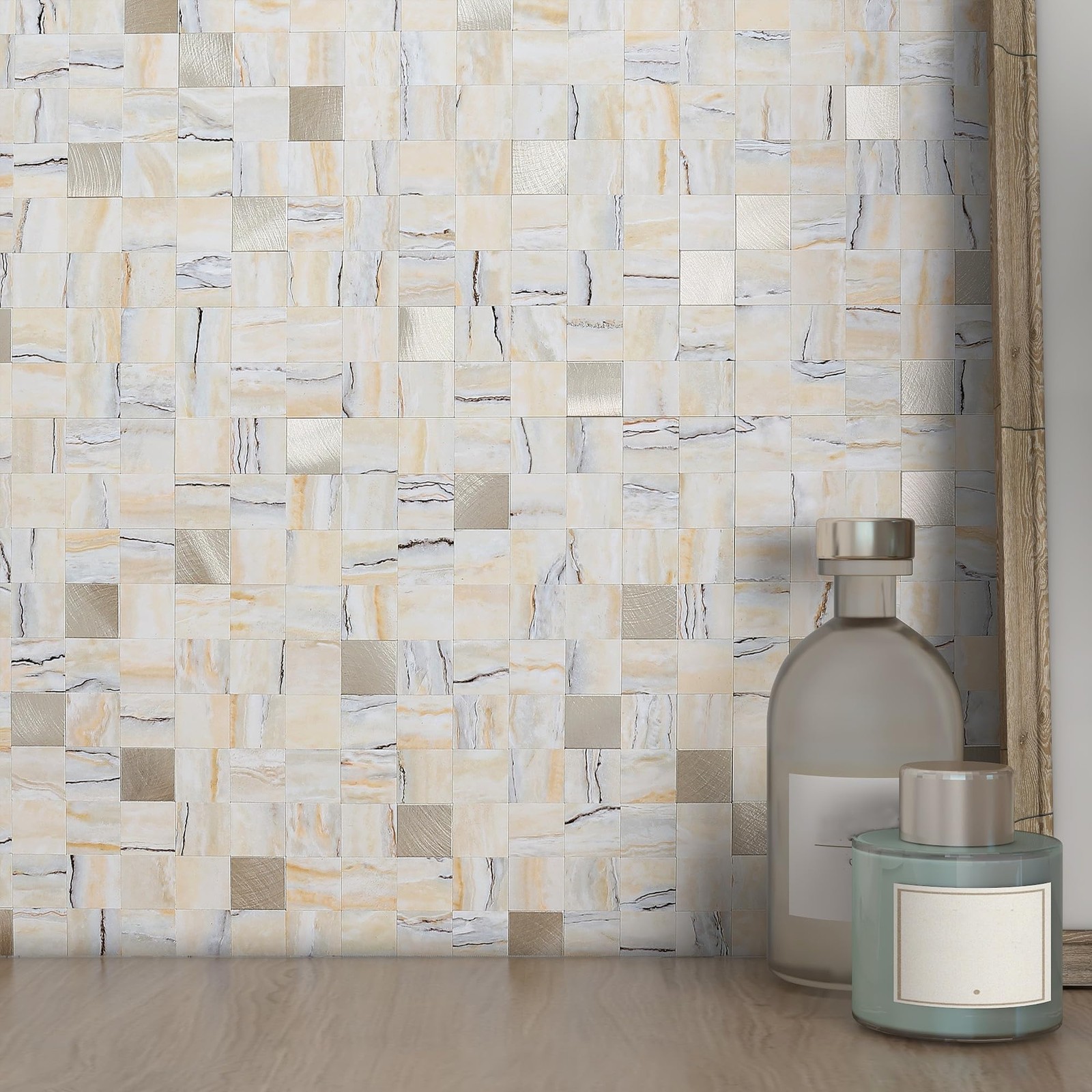 Square peel and stick backsplash,Kitchen peel and stick backsplash,Peel and stick bathroom backsplash tile,Peel and stick marble backsplash,Peel and stick backsplash,Peel and stick tile,Backsplash tile for kitchen peel and stick,Peel and stick backsplash for kitchen,Wall panels,3d wall panel,Backsplash,Kitchen backsplash tiles peel and stick,3d wall panels peel and stick,Kitchen backsplash,Stick on backsplash for kitchen Peel and Stick Backsplash Tile Measurement:Square mosaic tiles with tight joints,imitation marble tiles,total 100 chips cutted and mounted on adhesive backing one by oone by hand,these are mosaic tile stickers instead of thin vinyl backsplash Easy DIY Peel and Stick Tiles Kitchen Tiles:Light weight and thin tile sheet,2.4 mm thickness,appr.0.22~0.23 lbs each sheet,just peel and stick.Ideal stick on tiles stickers for kitchen backsplash and bathroom wall panels,save your treasure time and job Backsplash Tile Features:Waterproof peel and stick shower tiles made of durable resin plastic material,surface high gloss finishing, stain-resistant.Easy to wipe with sponge or damp cloth Mosaic Tiles Peel and Stick:Perfect for bedroom,dining areas,bathrooms,offices,stairs,kitchen backsplash,mirror tiles or on any other smooth surfaces(such as metal,glass,stainless steel, ceramic,plastic,wood, etc.) Worthful to Buy Waterproof Stick on Tiles:Adhesive wall tiles peel and stick,easier to work with than big rolls or larger tiles as they can be easily trimmed with scissors or utility knives so you can customize them the way you want