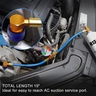 S elf-Sealing R134a A/C Can Tap Gauge Hose Recharge AC Conditioning Fast Shipping YOU MAY IN NEED OF IT In order to live comfortably in the hot summer, the air conditioning is essential. It is necessary to carry out routine maintenance of vehicle air conditioning before the summer comes, which requires the use of professional air conditioner maintenance tools. ADAFIRST AC U charge hose with gauge tool is one of the simple freon tool for AC diagnostic check and refrigerant charging work SET INCLUDES R134a Charging Hose with Gauge x 1 SPECIFICATION 1. Total length: 19" (the gauge is right in the middle). 2. Material: Rubber nylon resin hose and metal fittings. 3. Scale range: 0-100PSI, 0-7kg/cm². 4. Fittings: R134a low pressure side quick coupler and R134a self-piercing type can tap FITMENT TYPE Air conditioning: fit for all models with easy to reach R134a suction service port. Refrigerant can: Can with 1/2" male thread bottle opening, self-piercing type. EASY TO OPERATE Measure Pressure without R134a Can 1. Start the car, open AC to MAX. 2. Clockwise turn T type knob to close can tap. 3. Connect the quick coupler to the car AC suction service port to measure the pressure. Measure Pressure with R134a Can & Charge Refrigerant 1. Start the car, open AC to MAX. 2. Anticlockwise turn T type knob to retract the internal pin, screw the can tap on the R134a can. 3. Connect the quick coupler to the car AC suction service port, you can get the pressure index. 4. Clockwise turn T type knob to pierce R134a can, and then anticlockwise turn T type knob to retract the internal pin, to connect the R134a can and the AC system for charging refrigerant. 5. After charging, clockwise turn T type knob to close can tap, turn off the vehicle and the AC system. 6. Carefully disconnect the quick coupler from the AC system, the hoses may contain residual refrigerant. NOTE 1. This AC charging hose is 19" in total. If your AC suction service port is hard to reach, we do not recommend buying this product 2. Please confirm your AC system uses R134a refrigerant and refrigerant bottle opening is 1/2" ACME Male thread before biding. 3. Please wear gloves and goggles when use. 4. The AC refrigerant recharge tool should be used by professional or under the guidance of a professional. 5. Always refer to equipment manufacturer's operation instruction, compare to the manufacturer's recommended readings. 6. Please ensure the AC compressor is working when measure pressure. Otherwise you will get a wrong index.