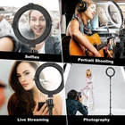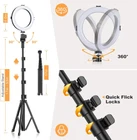 Selfie Light with Tripod Stand - Dimmable Selfie Ring Light LED Camera Ringlight with Tripod and Phone Holder for Live Stream/Makeup/YouTube Video, Compatible for iPhone Android, Remote(Upgraded) Description 【Dimmable Ring Light&Upgraded Arcuated Lampshade】Necessity of 3 Colors Lighting Mode: warm light for party; cool light for work; natural light for daily use. 10 Levels of Brightness: easily switch color temp between 3,200K and 6,500K to meet all your needs in different circumstances. Inspired by magnifying glass, upgraded arcuated lampshade is designed with radian for concentrated and gentle illumination. 【Multi-Functions Extra Lighting&Unique DIY Structures】Perfect extra light for video shooting, live streaming, selfie photos, filming, video recording, online tutorial, dark scenery vlogging. Professional Video Rig for creating live videos/recording with smartphone or computer for Facebook, YouTube, twitter, snapchat, facetime, etc. 3 DIY structures can add more lighting, mobile phone or camera, bring more brightness and practicality to you. 【2-in-1 Adjustable Tripod Stand】Our tripod stand itself can be used as a selfie stick or phone/camera tripod. Extendable from 14.5 inches to 52.5 inches, just lock it at desired length as you like, you can stand the ring light on the floor or just put on a table. With rubber mats wrapped on the bottom, protect your floor and desktop. 【Rotatable Universal Phone Holder】The phone holder fits most smartphones with or without a case, suitable for iPhone XS / XS Max / XR / X / 8 / 7 plus / 6, Samsung S8 / Note8, etc. Rotate to the angle you want, and free your hands when making videos/recording with smartphones. With non-slip rubber to hold your phone firmly without scratching it. 【USB Powered&Wireless Remote Control】No battery needed, works with most devices that support USB port, like laptop, PC, power bank, USB charger, AC adapter, and etc. A Wireless REMOTE that allows you to control your phone and taking hands free photos. Android and iOS compatible. 8" Selfie Ring Light with Tripod Stand Professional Video Rig for creating live videos/recording with smartphone or computer for Facebook, YouTube, twitter, snapchat, facetime, etc. 3 Colors Lighting Mode & 10 Levels of Brightness 3 Light Color - Cool Light, Warm Light and Natural Light. 10-Level Brightness - Customize your lighting source to the best. Unique DIY Structures 3 DIY structures can add more lighting, mobile phone or camera to meet your more needs, bring more brightness and practicality to you. NOTE: DIY accessories are not included. Professional Makeup Light Easily switch color temp to observe all kinds of makeups, avoiding awkward makeup disasters. Ring Light ensures perfect makeup, just hang out with your friends confidently and amaze them. Works as a Selfie Stick After detach the Selfie ring light, the tripod stand can be be used as a selfie stick. Take pictures while no one holds phone for you. Easy to Carry The ring light is foldable, lightweight and sturdy, and easy to carry. Perfect for all kinds of weather, record the perfect moments anytime, anywhere. What Will You Receive? 8 - Inch Ring Light × 1 Tripod Ball Head ×1 Tripod × 1 Mobile Phone Holder × 1 Selfie Remote Control × 1 Instruction Manual ×1 Shipping We only ship items to your eBay registered address for fast and accurate shipment. Thanks We will ship most orders within 1 business day some items ship same day if ordered early enough Delivery >All shipments are shipped via USPS First Class (2-6 business day) from United States. Return Policy All items qualify for returns within 30 days of receipt. Feedback 1.We strive for 5 star positive feedback. We try our best to offer the best service for our buyers. 2.Please message us via eBay before leaving negative feedback.Let's solve the problems together! 3.Please give us a chance to resolve any issues before posting a feedback. 4.Please contact us with any questions or concerns. Thank you for your watch. We look forward to serving you.