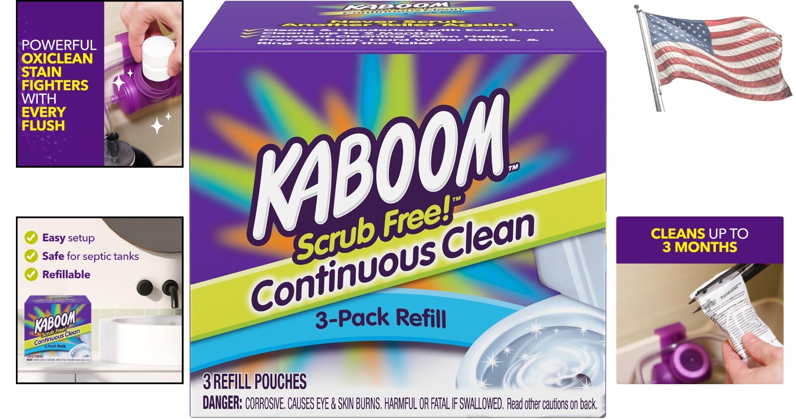 Septic Safe 3-Pack Toilet Cleaner Tablets - Automatic Freshness with OxiClean ‹ › ‹ › ‹ › ‹ › ‹ › ‹ › ‹ › ‹ › ‹ › Septic Safe 3-Pack Toilet Cleaner Tablets -Automatic Freshness with OxiClean Key Features: Continuous cleaning with every flush – clean toilet for up to 9 (3 per pouch). Automatic toilet bowl cleaner designed to fit seamlessly with the Scrub Free! Continuous Clean system. Scrub-free formula for effortless maintenance. Powered by OxiClean stain fighters for powerful cleaning and freshness. Safe for septic systems, ensuring no harm to plumbing or tank parts. Forget messy toilet wands and chemical scrubs – enjoy a hassle-free cleaning solution. Benefits: Eliminate the need for weekly scrubbing – a clean toilet with every flush. Designed to preserve your septic system while providing effective cleaning. Powerful stain-fighting action that ensures a sparkling clean toilet. Convenient and easy to use – simply refill and flush! Long-lasting freshness that eliminates unpleasant odors. Why Choose Our Septic Safe 3-Pack Toilet Cleaner Tablets? Transform your toilet cleaning routine with our innovative Septic Safe 3-Pack Toilet Cleaner Tablets, powered by the strength of OxiClean. This revolutionary cleaning system does all the hard work for you, ensuring your toilet remains spotless and fresh for up to nine without the hassle of traditional scrubbing methods. Why deal with the mess of toilet wands and harsh chemicals when you can enjoy the convenience and effectiveness of a scrub-free system? Safe for septic systems and easy to use, this continuous cleaner is the smart choice for a pristine bathroom. Make your cleaning routine effortless—order the Septic Safe 3-Pack today! Shipping Free & Fast Shipping - We offer free shipping to most of the USA with a normal delivery time of 3-7 days. However, due to the current situation, additional delivery time (up to 3 weeks) may be required for some items. Alternative Carriers - We may use alternative carriers (e.g. USPS, FedEx, UPS, etc.) to ensure your package arrives safely and on time. Due to the use of multiple carriers, we are unable to provide a tracking number automatically. Handling Time - Orders are processed and shipped within 1-2 business days of receiving cleared payment. Shipping Restrictions - Shipping to Alaska, Hawaii, Puerto Rico, Guam, and other US territories may incur shipping charges or delivery restrictions. Please contact us before ordering, or your order can be refunded/cancelled. State Restrictions - There may be restrictions based on your state of purchase. For example, certain items may not be shipped to California due to state regulations. Contact for Tracking Updates - If you require tracking updates or have any concerns about the delivery of your order, please feel free to contact us, and we will be happy to assist you. Return 30-Day Hassle-Free Returns - We want you to be completely satisfied with your purchase. If you are not, you can return the item within 30 days of receiving it for a full refund or exchange. Easy Return Process - To start a return, simply contact us and we will provide you with a prepaid return shipping label and detailed instructions. Restocking Fee - There are no restocking fees for returns. However, the buyer is responsible for return shipping costs if the return is not due to a seller's error. Refund Processing Time - Refunds will be processed within 5 business days of receiving the returned item in its condition. Payment We accept all major credit cards, PayPal, and Apple Pay for your convenience. Your payment information is secure and encrypted to ensure a safe and seamless transaction. Please complete your payment within 3 days of purchase to avoid any delays in shipping. Feedback Your feedback is extremely important to us. We strive to provide the best products and customer service possible. If you are satisfied with your purchase, please take a moment to leave us a positive review. If you have any concerns or issues with your order, please contact us before leaving negative feedback. We are committed to resolving any problems and ensuring your satisfaction. Contact Us If you have any questions or concerns, please feel free to out to our customer support team. You can contact us through the eBay messaging system. We are available Monday to Friday, 9:00 am to 5:00 pm EST, and we will do our best to respond to your inquiry within 24 hours. Buy it now and enjoy a pleasant shopping experience! Item Length: Kaboom Scrub Free Cleaner Item Height: Kaboom Scrub Free Cleaner Item Width: Kaboom Scrub Free Cleaner Volume: 3.38 x 3.38 x 3 inches Unit Quantity: 3.0 count Features: Scrubbing,Automatic Cleaning,Continuous Clean,Safe for Septic Systems,Easy to Use,Powered by OxiClean,Tablet Form,No Scrubbing Required,Refillable,Long-lasting,Hygienic,Convenient,Efficient,Cleans with Every Flush,Cleans for Up to 9,Flush Activated,Chemical-Free Type: Toilet Bowl Cleaner For: Toilet Form: Tablet Number in Pack: 3 Scent: Scent Free Item Weight: 0.01 ounces Unit Type: oz