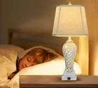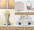 29'' Tall Farmhouse Table Lamps Set of 2, Boho Lamp for Living White Product Details Finish Type: Painted Base Material: Resin Bulb Base: E26 Product Dimensions: 10"D x 5"W x 5"H Lamp Type: Table Lamp Shade Color: White Shade Material: Resin Switch Type: Touch Style: 29"-White-2PCS Brand: WEITERS Color: White Special Feature: USB C+A Charging Ports,Two Light Sources,Bulbs Included,Energy Efficient Light Source Type: LED Material: Resin Room Type: Office, Living Room, Bedroom, Study Room Power Source: Corded Electric Shape: Rectangular Controller Type: Push Button Number of Light Sources: 2 Connectivity Technology: USB Included Components: USB Port Age Range (Description): Adult Is Waterproof: False Mounting Type: Tabletop Cartoon Character: Floral Pattern Wattage: 9 watts Number of Items: 2 Lighting Method: LED Control Method: Touch Indoor/Outdoor Usage: Indoor Water Resistance Level: Not Water Resistant Number of Pieces: 2 Efficiency: Energy Efficient Voltage: 120 Volts (AC) Is Cordless?: No Manufacturer: WEITERS Shade Height: 29 Inches Part Number: 123 Item Weight: 11.07 pounds Country of Origin: China Item model number: M0202LK2P Finish types: Painted Special Features: USB C+A Charging Ports,Two Light Sources,Bulbs Included,Energy Efficient Batteries Included?: No Batteries Required?: No Color Temperature: 2700 Kelvin Product Dimensions : 10 x 5 x 5 inches; 11.09 Pounds Item model number : M0202LK2P Manufacturer : WEITERS Country of Origin : China Finish Type: Painted Base Material: Resin Bulb Base: E26 Product Dimensions: 10"D x 5"W x 5"H Lamp Type: Table Lamp White Elegant Farmhouse Table Lamp: These 29 inch high table lamps come in a set of 2, which are perfect for your bedroom, living room, and have a beautiful and elegant exterior design that is very rustic. The unique hollow design of the desk lamp makes the night lamp function very well, creating a romantic atmosphere for the bedroom, making it the perfect bedside table lamp. Meanwhile, the minimalist style with high dimensions is the perfect emphasis on the living room side table. 2 Lighting Modes & Hollow Night Lights:WEITERS unique farmhouse table lamp provides multiple lighting options. The base of the bedside lamp has two ON/OFF switches, which respectively control the main light and night light. Simply press the button and you can adjust the lighting as per your needs. The upper and lower lights can be turned on together for maximum lighting range. This lamp is perfect for bedtime, studying or playtime Eye Protection & Widely Used:The elegant fabric lamp shade enables the light softer so that it protects eyes for your family. This white and vintage table lamp's tones and elegant frame make it a versatile accent suitable for a bedroom,nightstand,office, study room, hotel, foyer or living room, providing you with peace of mind lighting. These hollow out table lamps are the perfect gift choice for family and friends USB C+A Fast Charging Ports: Our bedroom bedside table lamp provides dual USB C+A fast charging interfaces to charge devices such as phones, Kindles, and pads. Regardless of whether the desk lamp is on or not, the charging port is working. Imagine how convenient it is to charge two devices simultaneously while reading a book or watching a movie.There is no need to find additional sockets, which can also avoid messy wires and save your space