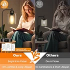 Return Policy Fast Delivery Trusted seller Set of 2 Industrial Touch Control Table Lamps with 2 USB Ports and AC Outlet - 3-Way Dimmable Black Bedside Lamps Nightstand Desk Lamps for Bedroom Living Room, Glass Shade & 2 LED Bulbs Included Product Description 【2024 Upgrade】Previously, we noticed that many customers often struggled to find the on/off switch late at night when using traditional rotary knob table lamps. Always putting our users first, we launched this set of 2 upgraded touch table lamps. And the touch sensor was fully upgraded in February for improved sensitivity and stability, without any flickering. Make your life more convenient and comfortable. 【3-Way Dimmable Table Lamp】- The table lamp offers 3 brightness options (low, medium, and high) to meet your needs at different times of the day. The touch control feature allows you to turn on/off the light and adjust the brightness level by tapping anyw on the metal base and pole. 【Upgraded 2 USB Charging Ports & AC Outlet】- We integrated an upgraded version of the dual USB charging ports and an AC outlet (5V/2.2A) on the bedside lamp, so you can easily and quickly charge 3 electronic devices simultaneously. These USB ports can be used whether the bedroom lamp is On or Off. With a 5.3FT cord, the USB lamps for bedroom sets of 2 can easily access the outlet no matter w it is placed. 【2 Free Dimmable LED Bulbs】- The industrial bedroom lamps come with two ST58 dimmable LED vintage bulbs, 6W (60W Equivalent), 800 lumens, 25000+Hrs , 90% energy saving. Gives soft and natural light, no flicker, no dazzle, and better protects your eyes. 【60-MONTHS AFTER-SALE SERVICE】- We proudly stand behind all of our products 100%, which is why we offer a full 60-months after-sale service. If your nightstand lights have any defects or stop working within 5 years, please don't hesitate to contact us via the message center, we help you troubleshoot or send a whole new product. We want to make you happy with this purchase. Shipping Returns Payment Shipping Shipping is FREE to all addresses other than APO/PO boxes in the lower 48 states. All our stock ships from US-based warehouses. Shipped via USPS or UPS (depending on location and package weight) Unless stated otherwise, all orders will ship within 24-72 hours of your payment being processed. Check our feedback to see the great reviews of FAST shipping we offer. Returns Seller does not accept returns Payment We currently accept payment via eBay managed payments only. Once payment is cleared, we will dispatch your shipment within 1-3 business days. Please refer to the "Shipping" tab for more information regarding shipping speed to your destination.