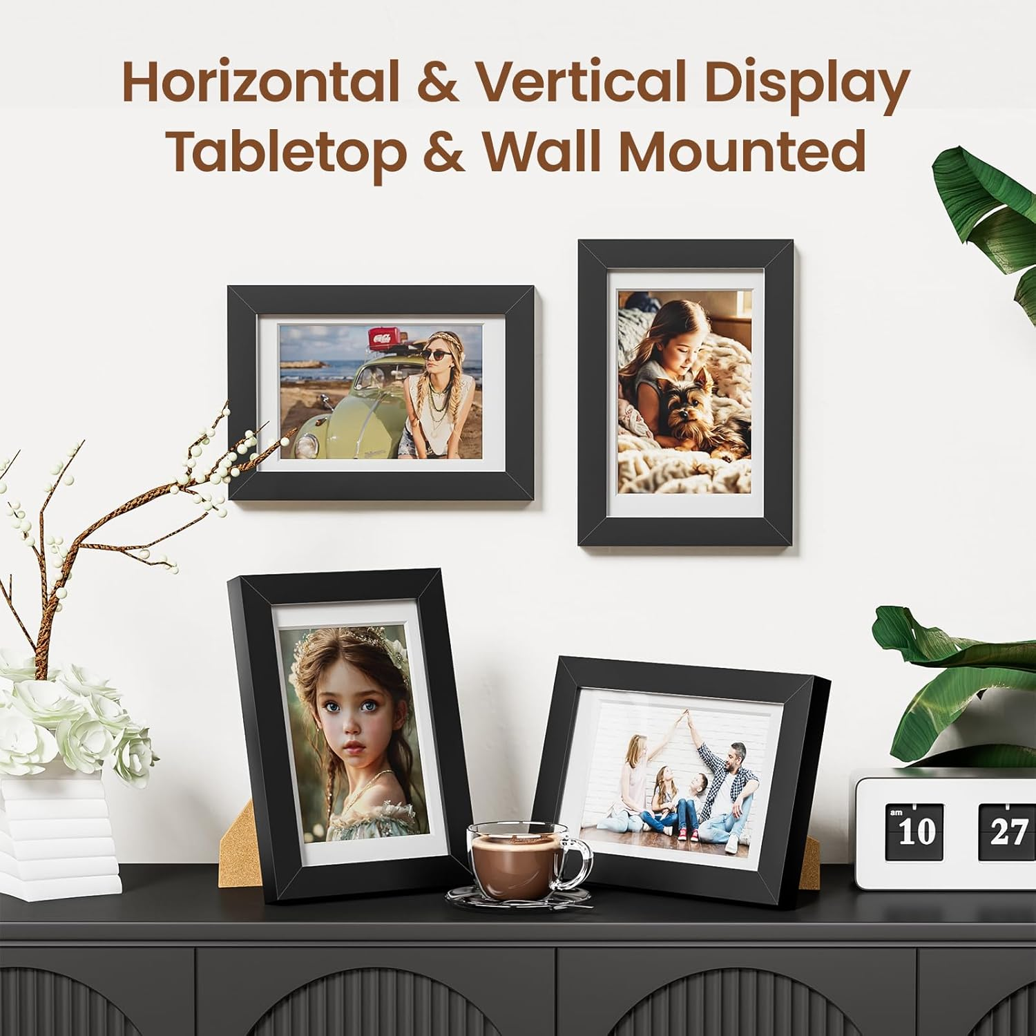 SIZE: The picture frame set perfect for the picture 5"x7",or display 4"x6" with mat.Please note that to hold the clear plexiglass and paper better,The front view display of the graduation picture display will smaller 0.5". MATERIAL: These 3 picture frame made of high-quality plastic, The transparent protective cover board also. So the picture frame collage difficult to broke in the falled, Do not worry about hurt your sweett kids. DISPLAY: small picture frame has horizontal hooks & vertical hooks and an adjustable wooden stand.So you can choose desktop or wall mounted displayed the 5x7 picture frame with mat for your home decoration. INSTALL: Wall picture frames used metal flexible lock tabs to hold the backboard,rota to open and close,easily to install.Caues of the lock tabs flexible,You not only display thin picture by this wedding picture frame,also thicker as diamond art and more. Quality: Choose Heimlove,You will get the durable and sturdable mini picture frames,the frame's front view protective cover is HD Plexiglass,picture holding by the wooden backboard and metal lock tabs.Heimlove provide 90days free return&replace for every wall frames.360 days 24-hours servise online. Product Description Picture Frame Information: Frame Edge Width : 0.63 inches Frame Edge Depth : 0.59 inches Display Item Height (Max) : 0.2 inches Display Item Suitable : √ Letter 0.004in √ Photo Paper 0.012in √ Craft Paper 0.03in √ Kid's Artwork 0.05in √ Moving Poster 0.08in √ Comic Book 0.12in √ Diamond Art 0.16in √ Foam Poster Board 0.2in