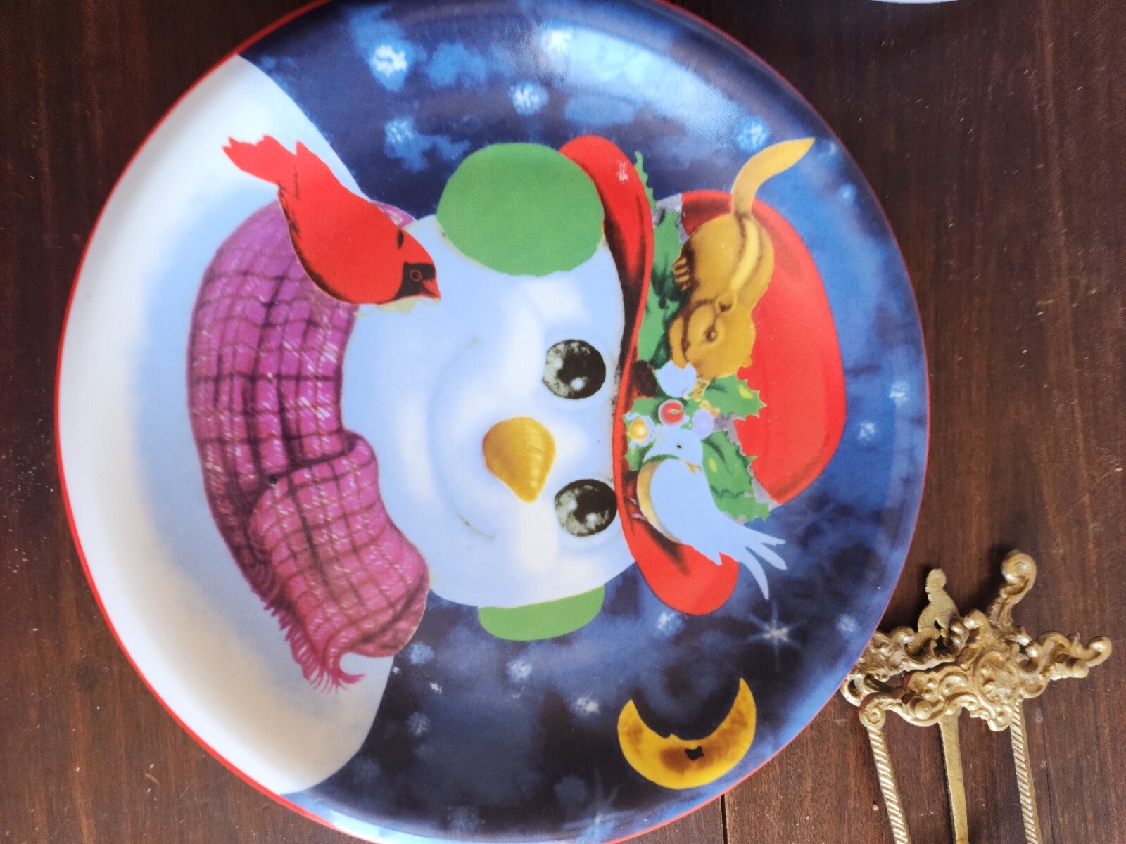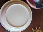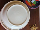 size 10-3/4 in The plates have black tiny spots on the back and front of them. Please look at all pictures.