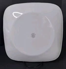 These white square dinner plates feature a fresh orange/red floral design with green and sage leaves. They were made from 2014-2019. The plates are in excellent pre-owned condition with no chips or cracks.