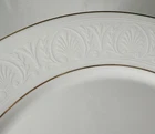 Set of 4 Lenox Hannah Gold Debut Collection Bone China Dinner Plates. Approximately 10 7/8” wide. Plates are in excellent pre-owned condition.