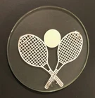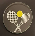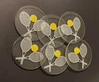 Set of 6 White Tennis Racket Yellow Ball Round Glass Coasters 4"