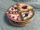 Set of 7 salad plates in very good condition. One plate has a chip on the bottom which is not visible and does not impact usage. No other cracks or chips. Please see attached photos.