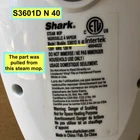 Shark Steam Mop S3601D N 40 Replacement Part - Water Tank Cap Stopper Plug Typical minor marks from previous installation. Functions normally. Actual item shown. Non-smoking and pet-free seller. Genuine OEM original replacement part for Shark Steam Mop S3601D N 40. twist cap for water reservoir clear tank cup