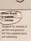 Shark Vacuum accessory part X13FC500 Power Brush Tool Attachment for Shark Rotator NV500 NV501 NV502 Designed for removal of pet hair and ground in dirt from carpeted stairs and upholstery. In good used condition with minimal wear.