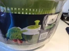 NEW Sharper Image Salad Spinner, Easy Spin.Built In Drainage Grate And Dressing. The plastic is torn on top but has never been used.