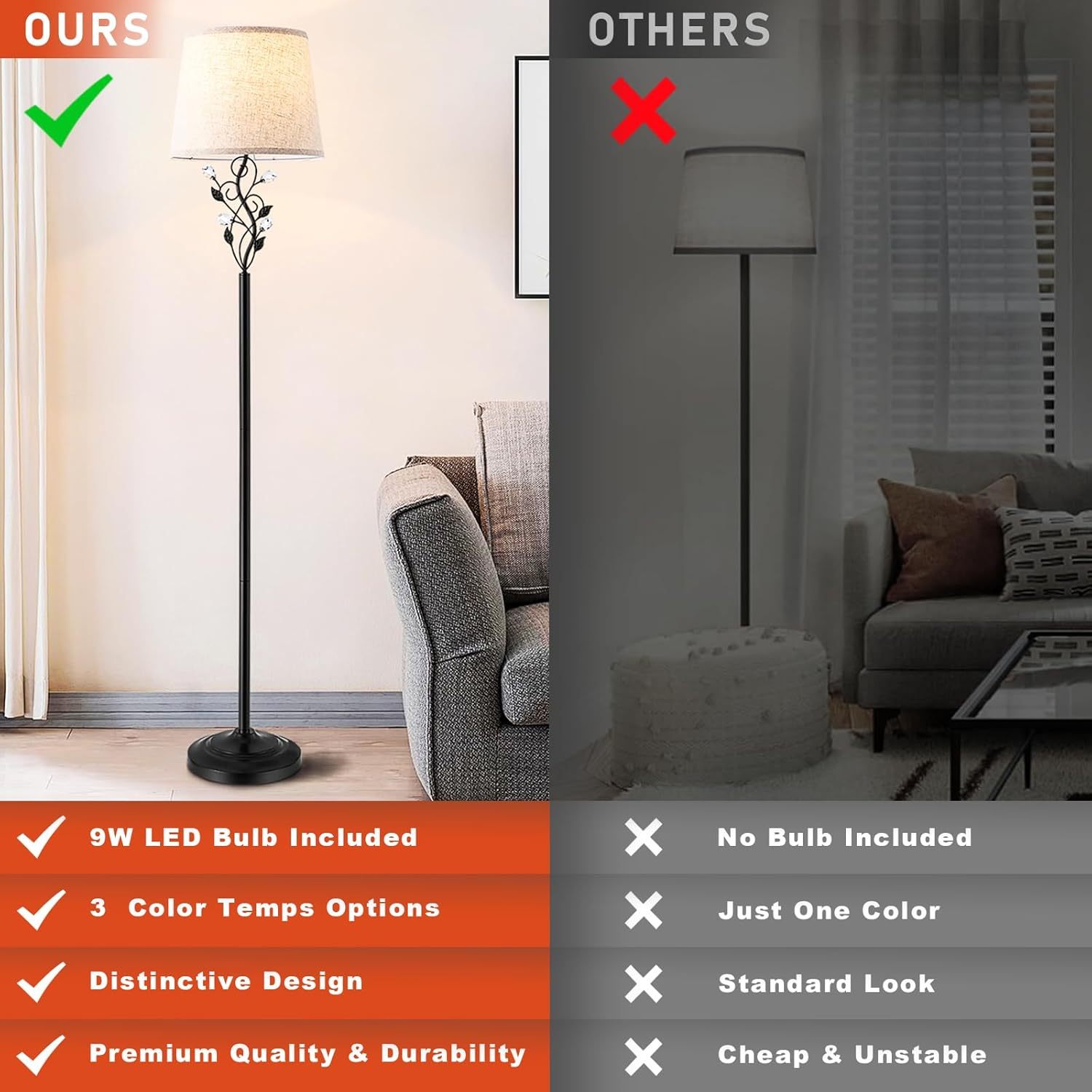 Store New Arrivals Add to Favorite View Feedback Contact Sheeta 65’’ Floor Lamps for Living Room with 3 Color Temperatures LED Bulb, Standing Lamp Tall Farmhouse Floor Lamp with Rustic Leaf Design, Tall Lamps for Living Room Bedroom Office Reading, Black Description Item model number F5003-01-BK Light Source Type LED Style Modern Farmhouse, Rustic Number of Items 1 Number of Light Sources 1 Country of Origin China Batteries Included? No Lamp Type Floor Lamp Room Type Kids Room, Office, Living Room, Bedroom, Study Room Product Dimensions 10"D x 10"W x 65"H Material Metal, Fabric, Crystal Specific Uses For Product Standing lamp reading, Living room floor lamp, Tall lamp for office, Bedroom floor lamp, Nursery floor lamp Included Components Bulb, Foot Switch, Shade Indoor/Outdoor Usage Indoor Batteries Required? No Item Weight 11.28 pounds Special Features Adjustable Color Temperature, LED Bulb Included, Farmhouse Rustic Design Special Feature Adjustable Color Temperature, LED Bulb Included, Farmhouse Rustic Design Part Number F5003-01-BK Shade Color Cream Color Black & Cream Is Cordless? No Recommended Uses For Product Floor lamp for bedroom, Floor lamps for living room, Office floor lamp Shade Material Fabric Switch Type Foot Elegant Farmhouse Design: The Sheeta 65’’ floor lamp features a unique rustic leaf design on a sleek black metal stand, adding a touch of elegance to any space. Its farmhouse style complements modern, vintage, and transitional decor, making it perfect for your living room, bedroom, or office Adjustable Color Temperatures: Comes with a 9W LED bulb that offers three adjustable color temperatures (2700K warm, 4000K neutral, and 5000K daylight). This versatility allows you to create the perfect ambiance for reading, relaxing, or working Soft Linen Lampshade: The textured linen lampshade softly diffuses light, creating a cozy atmosphere while reducing eye strain. Its neutral color harmonizes well with any color palette, enhancing the aesthetic appeal of your space Sturdy and Durable Build: Made with high-quality materials, this rustic floor lamp is built to last, offering stability and durability. The robust base prevents tipping, ensuring safety and peace of mind, especially in households with children or pets Easy Assembly and Operation: Simple to assemble, with all necessary components included. An on/off foot switch allows convenient hands-free operation, making it easy to light up any room with a gentle tap Product Description Upgrade Your Home with Sheetea Specialization: With over a decade of experience in lighting manufacturing, our team of designers and technicians possesses exceptional expertise and a unique vision, dedicated to perfecting every lighting product we offer. Innovation: Drawing inspiration from everyday life, we infuse creativity and beauty into our lighting solutions to deliver products that are not only visually stunning but also incredibly convenient. Customer-Centric: We prioritize the user experience above all else. Before our products hit the market, we conduct real-life trials by bringing sample lights into our homes. This way, we identify and address any potential issues that might arise during daily usage. Our ultimate goal is to create light fixtures that are both aesthetically pleasing and exceptionally user-friendly, adding convenience to your everyday life. ABOUT US We’re dedicated to bringing you great deals on quality products. From home décor and garden essentials to tools, hardware, and pet accessories, our store has something for everyone — all at prices you’ll love. SHIPPING We ship all orders directly from the USA for fast, reliable delivery. Most items ship within 1 business day and include free shipping to the lower 48 states. For international orders, we use eBay’s Global Shipping Program — simply continue checkout to see costs, duties, and taxes for your country. FREE RETURNS We offer a 30-Day Return Policy on items which you are not completely satisfied with. You have the option for a full-refund or an exchange of the item. CUSTOMER SATISFACTION We do everything we can to ensure every customer is 100% satisfied. If something isn’t right, just send us a message — we’ll make it right quickly!