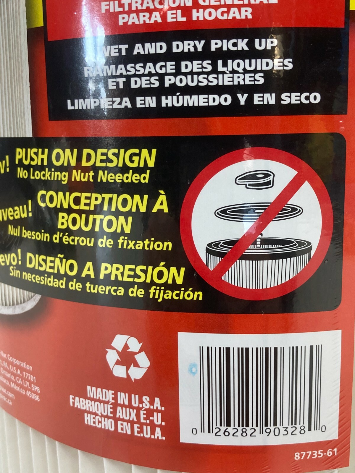 This filter is a game-changer for my Rigid vacuum! Super easy to install—just push it on, no extra parts needed. Works great for both wet and dry messes, and the fact that it's washable saves me money on replacements. Fits perfectly and keeps dust contained. Just make sure it's compatible with your model since it doesn’t fit Shop-Vac brand units. Highly recommend!