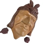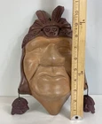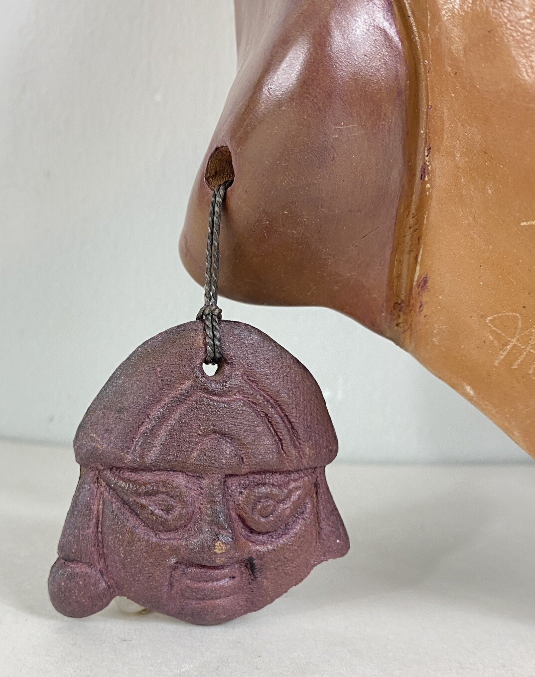 Vintage Painted Pottery Indian MASK w Face Earrings, Native American Aztec Mayan Mexican Wall Art SIGNED, RARE Heavy Estate Find. Some scratches, spots, marks and dings. Both "earrings" appear to have a broken corner. A rare find.