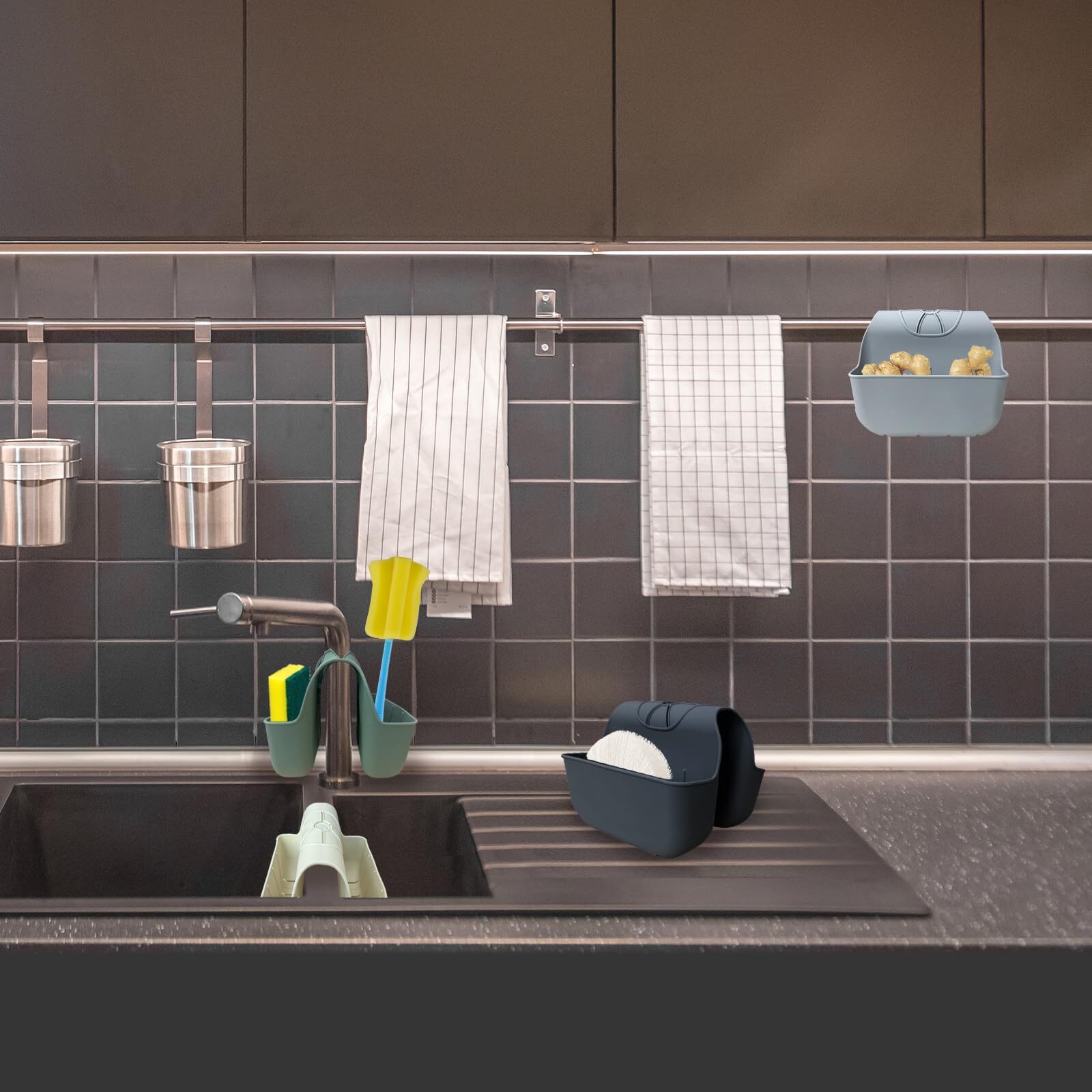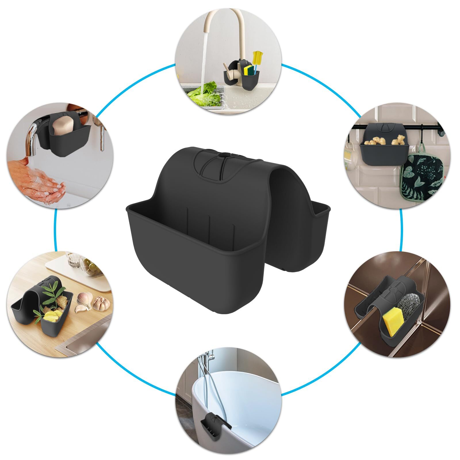 Sponge Holder for Kitchen Sink, Silicone Sink Saddle Caddy Organizer Rack Features: 【Multiuse Sponge Saddle Caddy for Sink】 - The sink organizer can store sponge, soap, dish brushes, dish towels, sink strainer, sink stopper, scrub and more. 【Small Size Take Little Sink Space】 - The sponge holder take small sink space and will not affect daily sink functions and it's very soft and flexible. A single sponge rack size is 5.9"L x 2.5"H x 1.6"W, the max width up to 3.7"W. 【100% Silicone Material】- The saddle sink caddy is made of 100% high quality silicone, eco-friendly, ultradurable, flexible, dishwasher-safe, good organizer for kitchen sink small items like sponge, duster cloth. 【Keep Your Kitchen Sponge Dry】- The kithchen sink holder drainage holes designed allows the sponges and brushes air dry quickly, keep the kitchen dry and tidy. 【Easy to Use】- Keep your cleaning sponges organized with the kitchen sink caddy holder, the sponge holder fits standard dish sponges and easy hanging and installation on sink and faucet. SHIPPING We are always working hard to ensure your package arrives as soon as possible. Please understand that some factors like weather, high postal traffic, and the performance of shipping companies are outside of our control. We offer free shipping to the lower 48 states and ship within 3 business days of payment, usually sooner. We do not accept P.O. Boxes. Please provide a physical address.