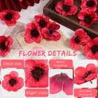 Features: Exquisite design: Designed with delicate and vivid appearance, our artificial flower decor is proper to dress up your home wall, front door or vase. These faux flowers will bring more romance to your home. Comfortable and soft texture: These artificial flowers decorations are made of soft silk cloth, which is reliable and comfortable to use. Different from plastic decors, these faux flower decors are more realistic and safer to use. Specifications: Material: silk cloth Color: red and black Size: about 2.8 inches Package includes: 150 x Artificial flower heads Notes: Manual measurement, please allow slight errors on size. The color may exist a slight difference due to different screen displays. Please notice that our flower decors are stemless. Package listing: you will receive 150 pieces of artificial poppy flowers in package, printed with classic black and red, ample in quantity, which can meet your diverse decorative demands and needs Vivid and realistic appearance: our fake red poppies come in vivid design, just like real poppy flower, but you should notice that our flower craft is stemless, you can hang it on your wall or your door Ideal for Remembrance Day and Armistice Day: if you have lost someone you love, you can use these artificial poppies to remember them, their spirit and kindness will always accompany you; They are a nice soothing gift for your family or friends Various occasions: our red silk poppy flowers are applicable for home, party, garden, hotel, wedding, office, festival, engagement, restaurant and any other situations; Fresh flowers are very fragile, but faux poppies will never wilt, you can cherish their beauty for long time Handmade flower arrangement crafts: this poppy flower is nice for DIY flower arrangements, DIY flower bouquets, bridal wedding bouquets and table centerpieces; The artificial poppies can decorate your different theme parties, adding more charm to your party
