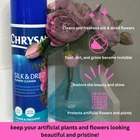Silk and Dried Flower Preserving Spray (16.9 oz.): Restore the beauty and shine of your fabric flower and plant arrangements with ’s silk flowers spray cleaner. With a special water-based formula, this silk flower cleaner spray cleans and freshens silk, fabric and dried flowers and plants with just one spray, enhancing their beauty, colors, and shine. It is an effective dust spray to make dust, dirt and grime invisible on contact, preventing them from reaccumulating and restoring the luster to your arrangements. Our spray for flowers and artificial plants is odorless, stainless, and environmentally safe. This dried floral preservative for artificial plants and flowers makes a great addition to flower arrangement supplies for florists, wedding and event planners, or those working with wedding decorations, holiday wreaths, bouquets, to maintain and preserve the life of your silk and dried flower arrangements. Instructions: Shake well before use. Apply the silk plant cleaning spray at 14 inches away moving the spray from side to side to get the desired effect, hold can upright. Repeat every month and do not spray in direct sunlight. Do not spray on furniture, walls, and floors. Wait five minutes before wrapping or covering a sprayed plant. --- About Us: With a legacy that spans back many decades, is a main driving force in the flower and plant industry and worldwide market leader in flower food. Whether you grow, transport, sell, or simply enjoy the beauty of flowers in your own home, has a tailor-made solution to keep cut flowers and potted plants looking fresher for longer. We aim to match the business needs of our partners with the enjoyment of the consumer: optimal floral and plant performance, better and sustainable business, and in the end, a more beautiful world Silk & Dried Flower Cleaner Spray(16.9 oz.): If you're looking for a way to keep your artificial plant and flower arrangements looking beautiful and pristine, you should definitely try this artificial plant cleaner spray which helps to restore the beauty and shine of your fabric flowers and plants, making them look as good as new. Odorless & Stainless: Our artificial plant spray is odorless, stainless, and environmentally safe. With this effective dusting spray, dust, dirt, and grime become invisible on contact, preventing them from reaccumulating on your displays and ruining their pristine look. This dust spray makes it easy to maintain the original luster of your silk and flowers dried, ensuring they continue to look fresh and vibrant. Perfect For Keeping Flower Arrangements Clean And Vibrant: Our flower cleaning spray It makes a great addition to flower arrangements supplies for florists, wedding and event planners, or those working with wedding decorations, holiday wreaths, flower bouquets, to maintain and preserve the life of your silk and dried flower arrangements. Cleans And Freshens With Just One Spray: With a special water-based formula, this dried flower preserver spray cleans and freshens silk, fabric and dried flowers and plants with just one spray, enhancing their beauty, colors, and shine. Give it a try and see for yourself the incredible difference it can make! Easy To Use: Silk & Dried Flower Cleaner is incredibly easy to use. With just a few sprays, you can eliminate dirt and dust, giving your flowers and plants the beautiful clean they deserve. Shake well before use. Apply the silk plant natural cleaning spray at 14 inches away moving the spray from side to side to get the desired effect, hold can upright. Repeat every month and do not spray in direct sunlight.