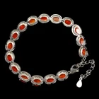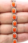 Solid sterling silver 925 stamped white gold coated bracelet featuring genuine natural mined oval cabochon orange fire opal gemstones each measuring 7mm x 5mm each individaully set within a border of 1mm x 1mm bright white round cut faceted lab created zircon stones. The bracelet measures 16.5 to 21.5cm 6 1/2 inches but can be fastened up to 8 1/2 inches using the integral extender chain. Total weight 14g / 9.48 carats GIFT BOXED Thanks for looking and please take time to view my other listings #18083 / 18106 / 18107
