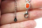 Solid sterling silver 925 stamped white gold coated bracelet featuring genuine natural mined oval cabochon orange fire opal gemstones each measuring 7mm x 5mm each individaully set within a border of 1mm x 1mm bright white round cut faceted lab created zircon stones. The bracelet measures 16.5 to 21.5cm 6 1/2 inches but can be fastened up to 8 1/2 inches using the integral extender chain. Total weight 14g / 9.48 carats GIFT BOXED Thanks for looking and please take time to view my other listings #18063