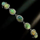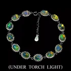 Solid sterling silver 925 stamped gold coated bracelet featuring genuine natural mined oval cabochon african opal gemstones with fire luster within each measuring 7mm x 5mm each individually set within a border of 1mm x 1mm bright white round cut faceted lab created zircon stones. The bracelet measures 16.5 to 19.6cm 6 1/2 to 7 3/4 inches using the integral extender chain. Total weight 16g / 7.9 carats GIFT BOXED Thanks for looking and please take time to view my other listings #14902